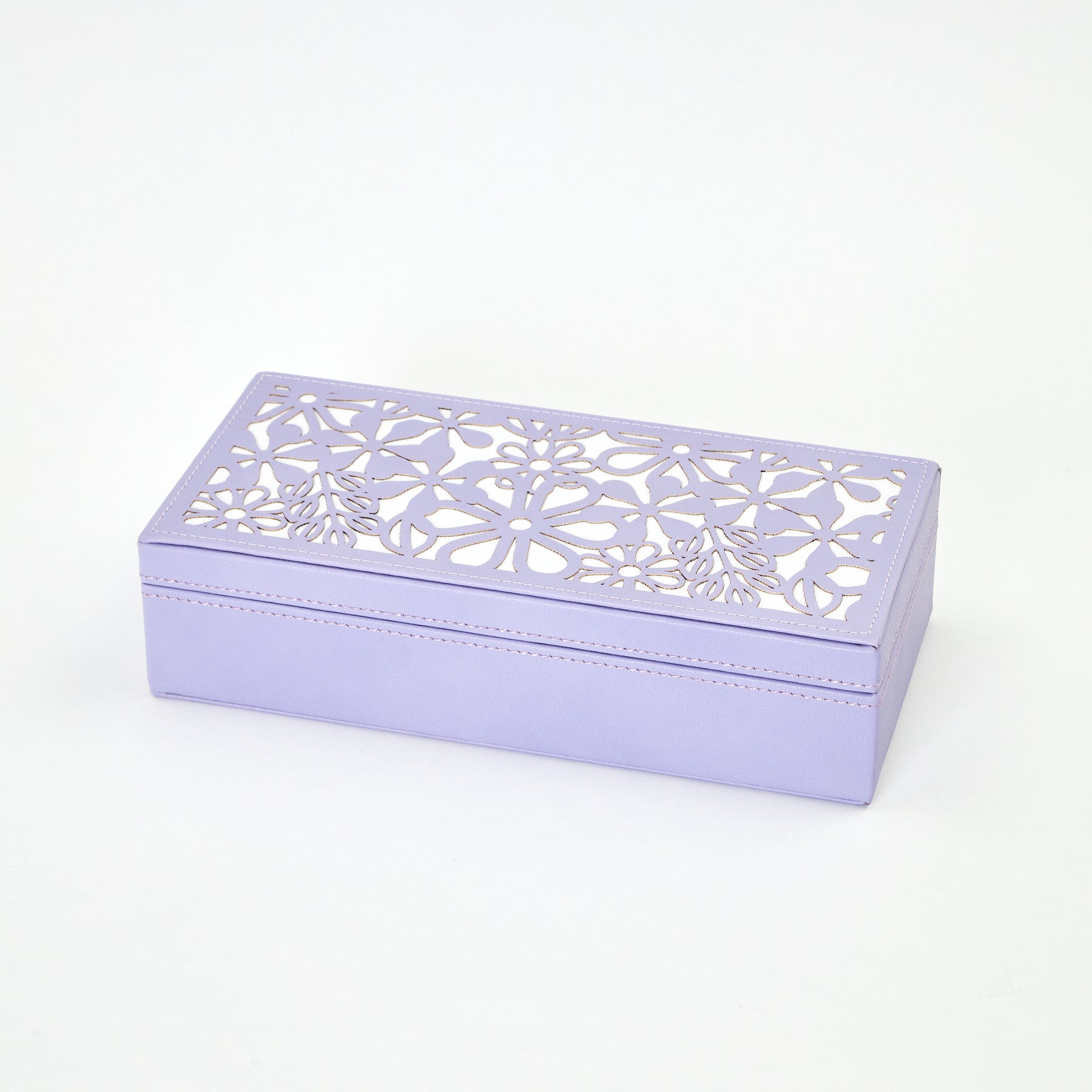 レースのような透かしフラワー模様がフェミニンな人気シリーズ。新色パープルはシックな大人のインテリアにマッチするアイテムです。
