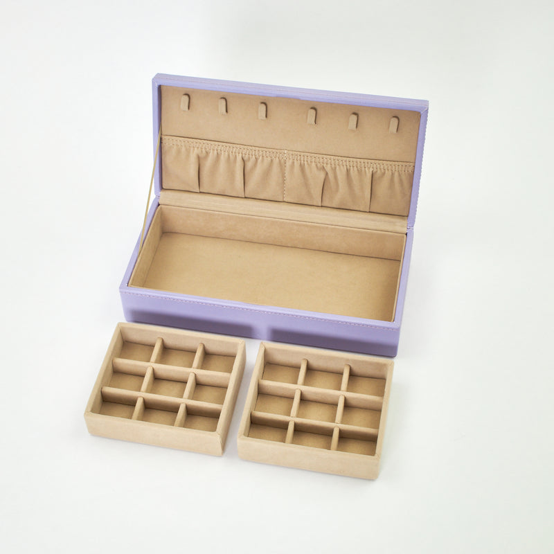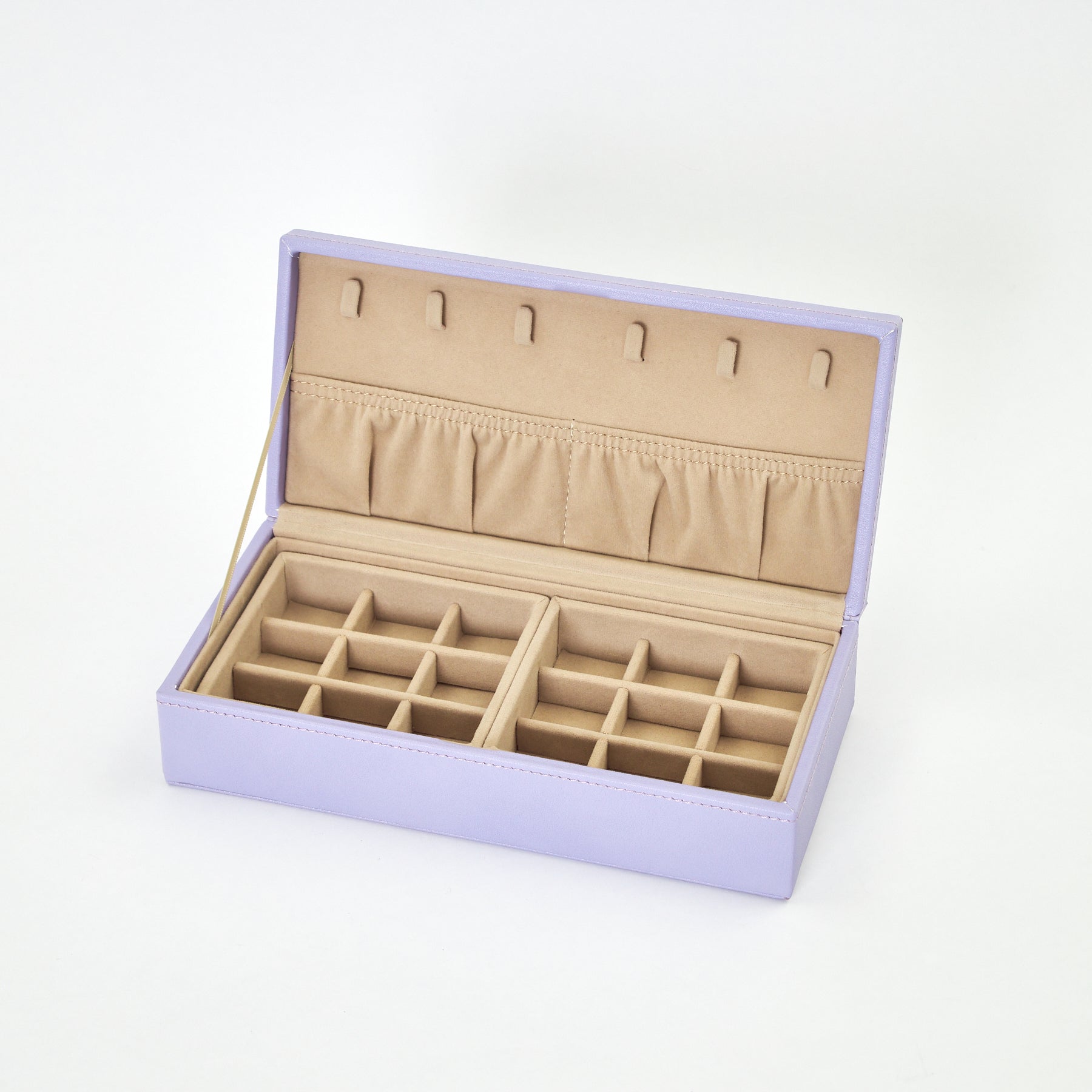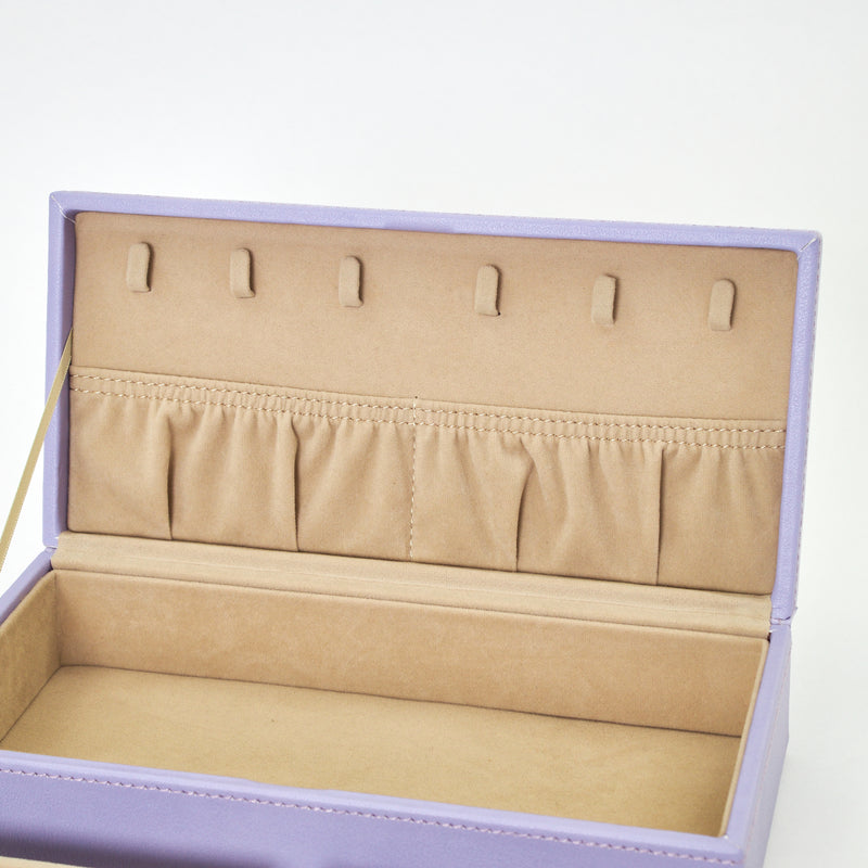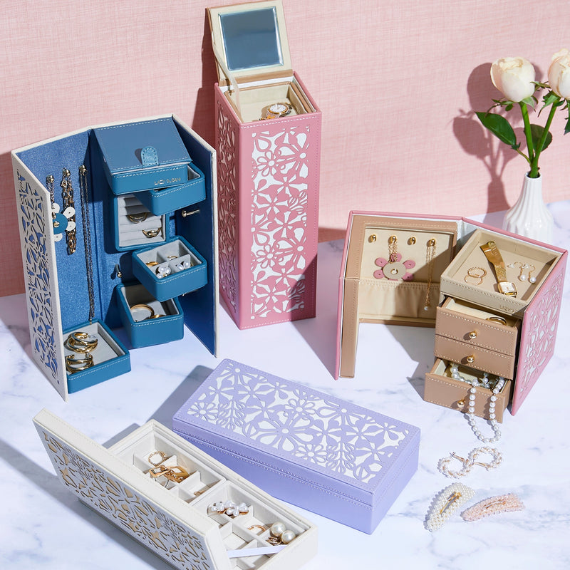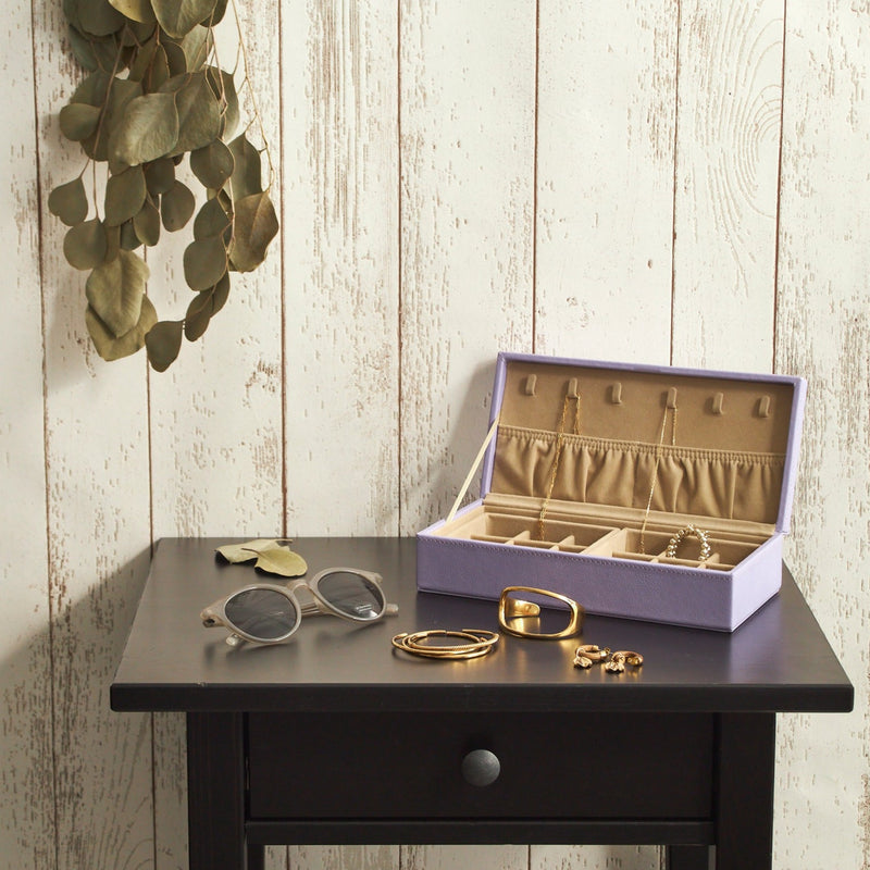 蓋を開けるだけでお気に入りのジュエリーがさっと着けられる、シンプルな収納です。