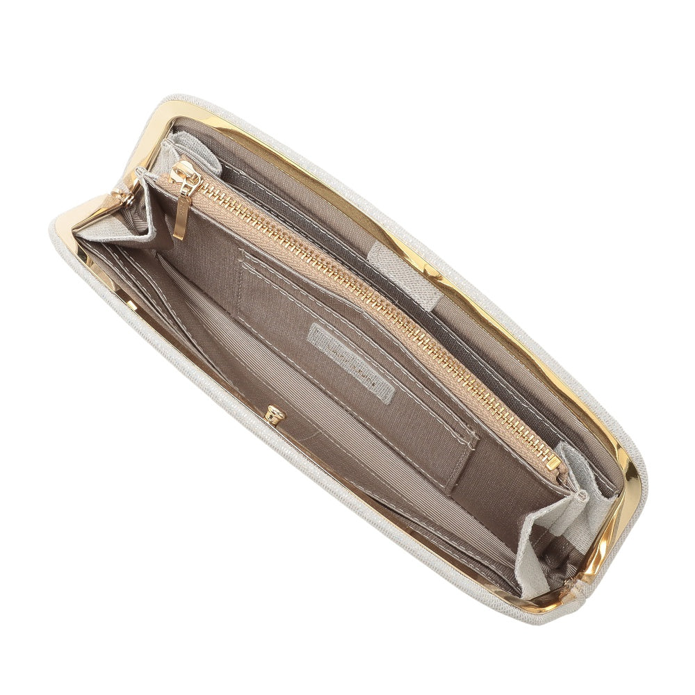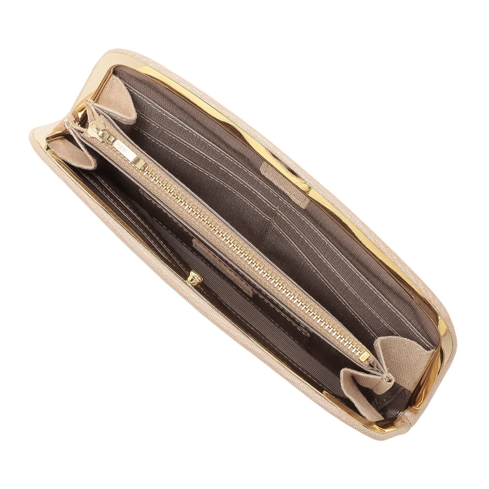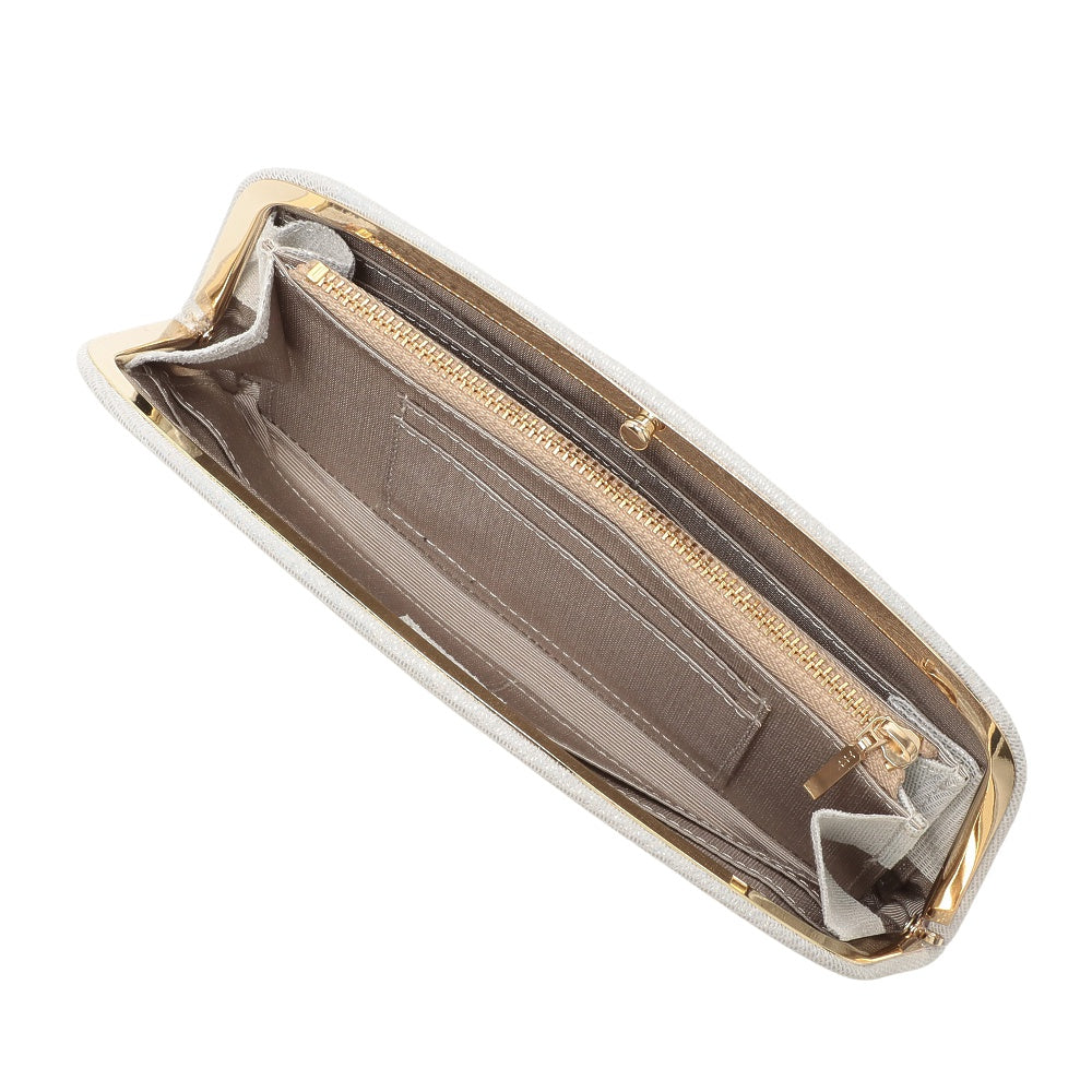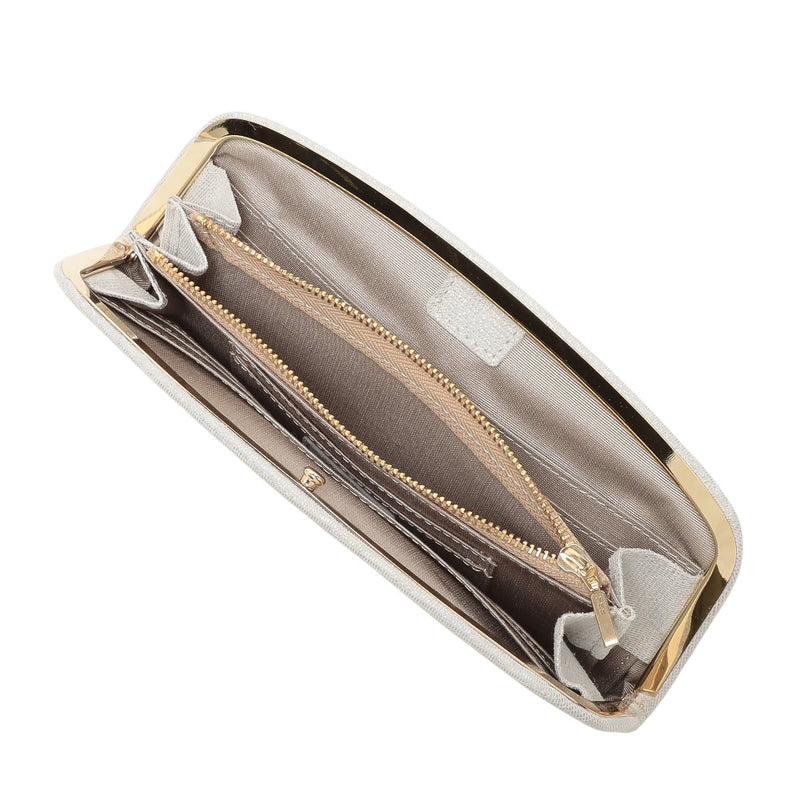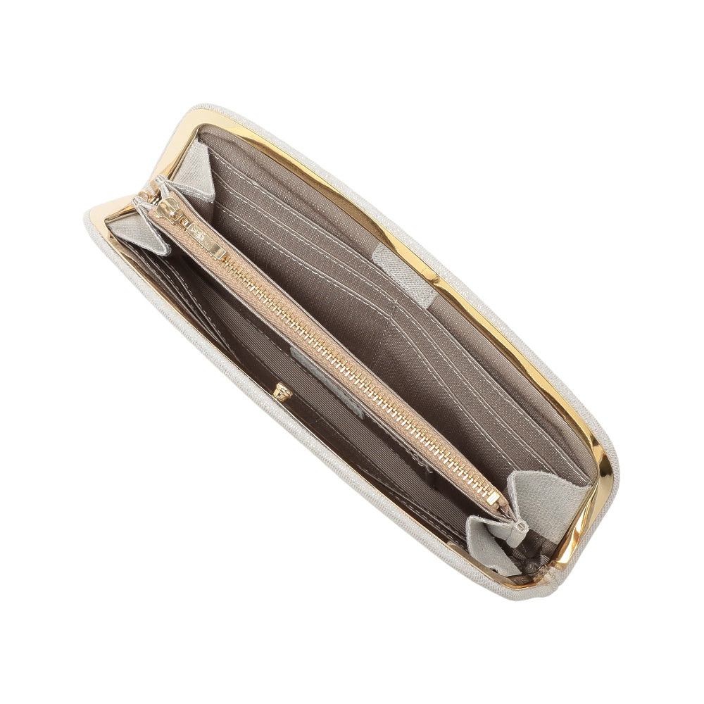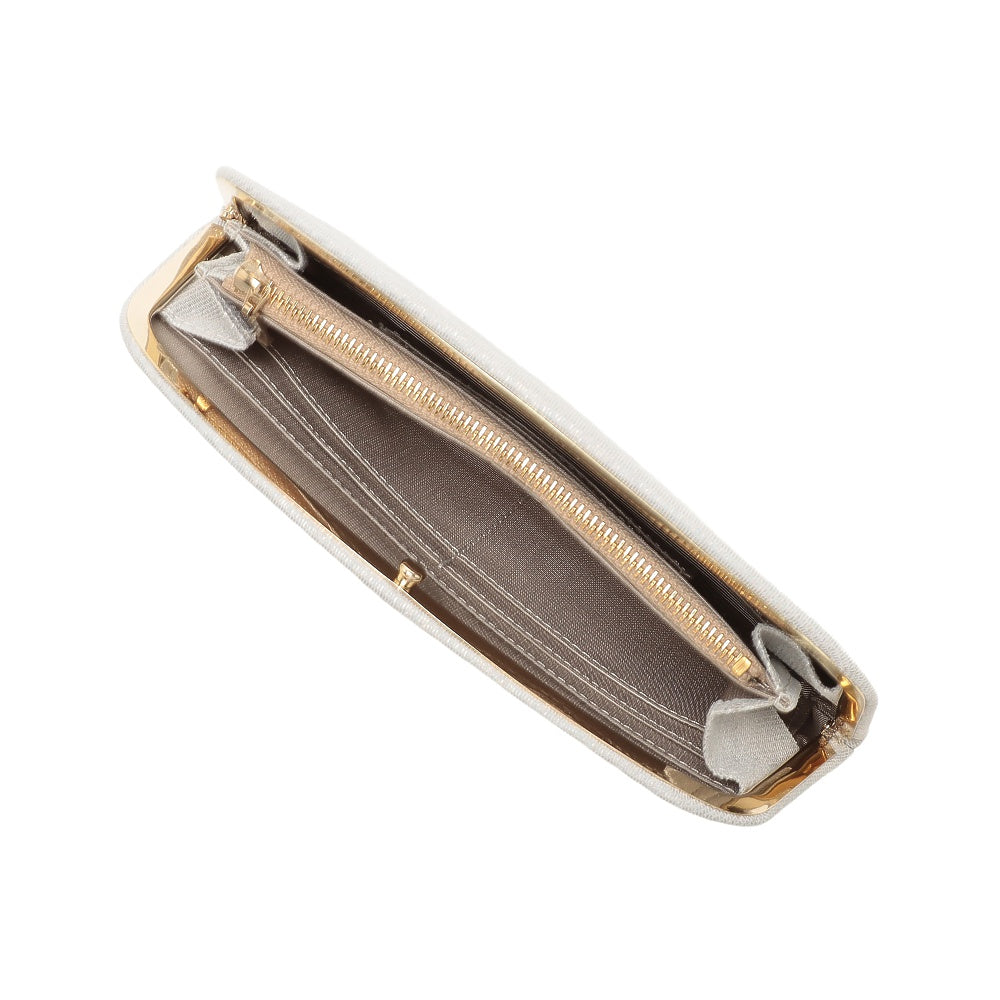 玉のないすっきりとした口金デザインのがま口ウォレット。オーロラの煌めきをほんのり効かせた上品な表情です。