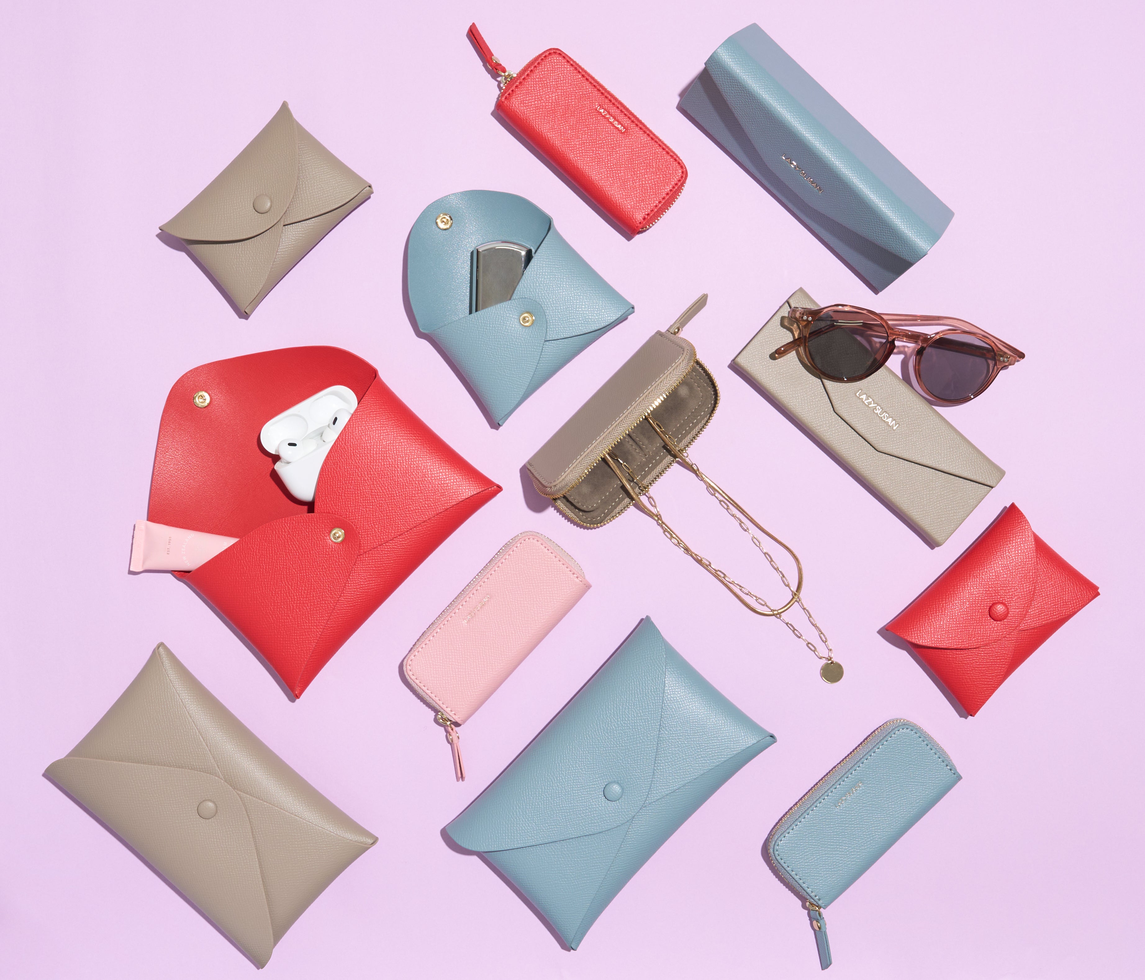 ポーチ、カードケース、ジュエリーケースとシリーズで揃えてバッグの中もすっきりと。