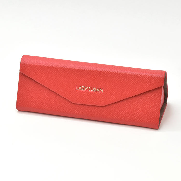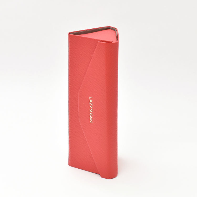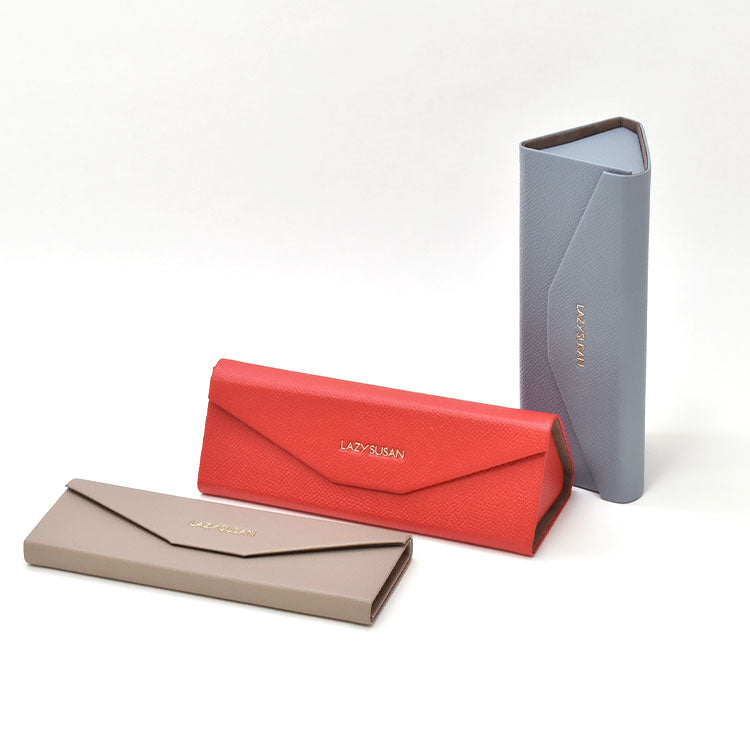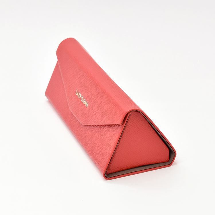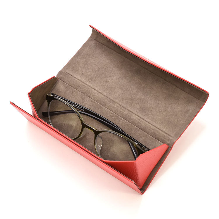 耐久性の優れた人工皮革は、大切なメガネを持ち運ぶケースに相応しい素材。三角ケースはバッグの隙間にもすっと入る省スペースなのも嬉しいポイント。