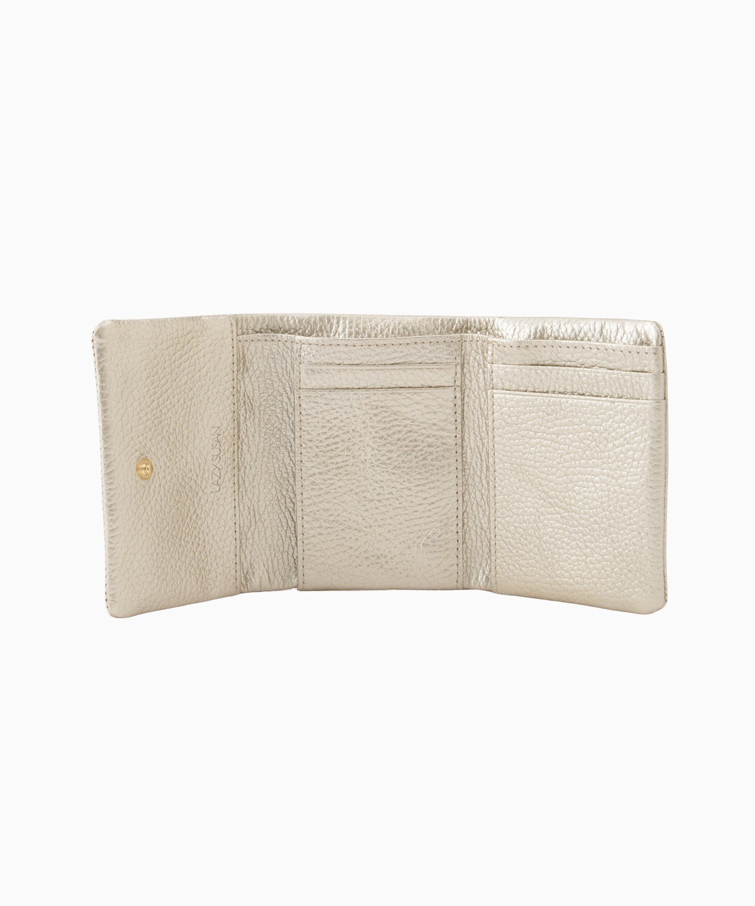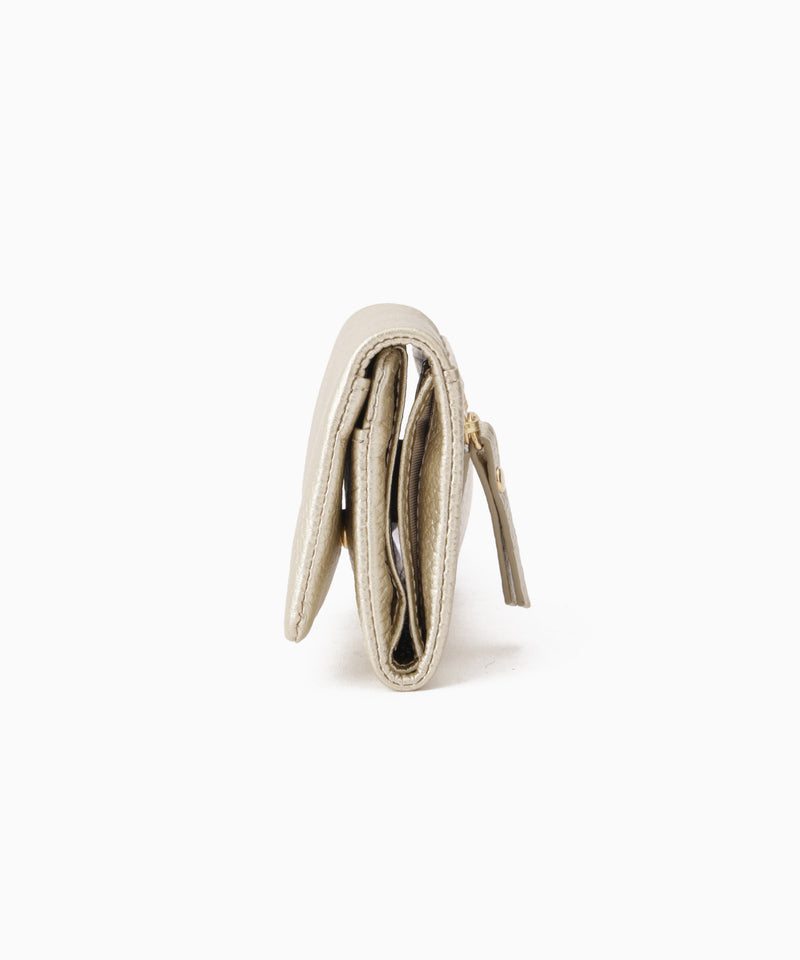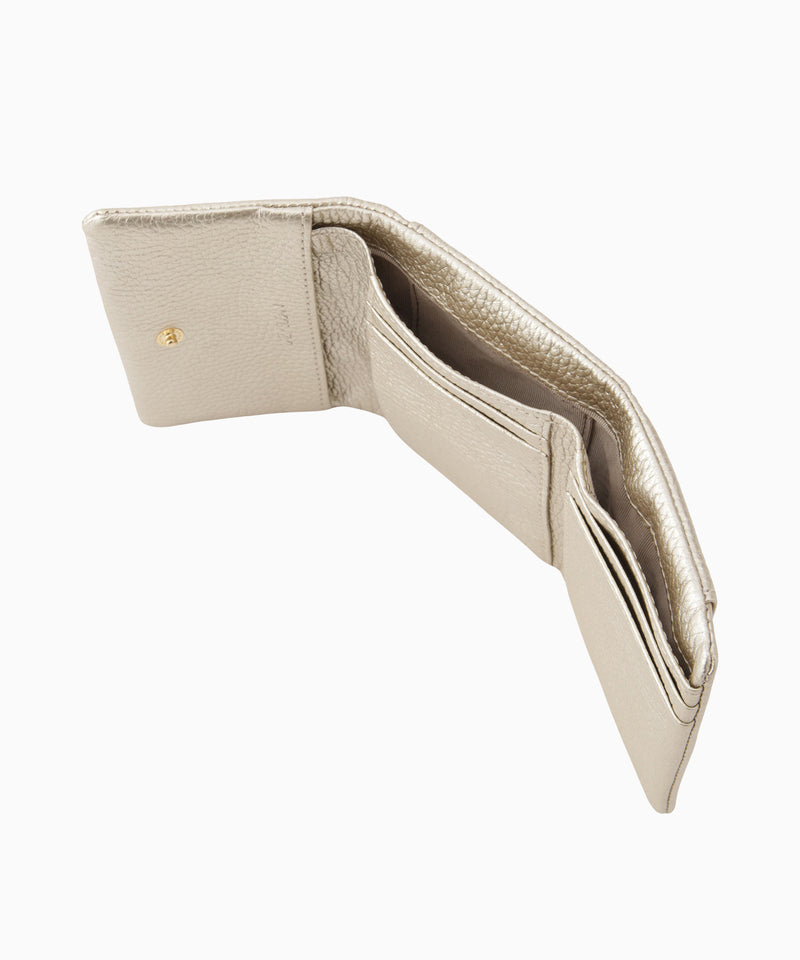 札入れの中にもカードポケットがありICカードの使用に便利。コインは背面のファスナーポケットでさっと取り出せます。コンパクトさと使い勝手の良さを両立する三つ折りウォレットです。