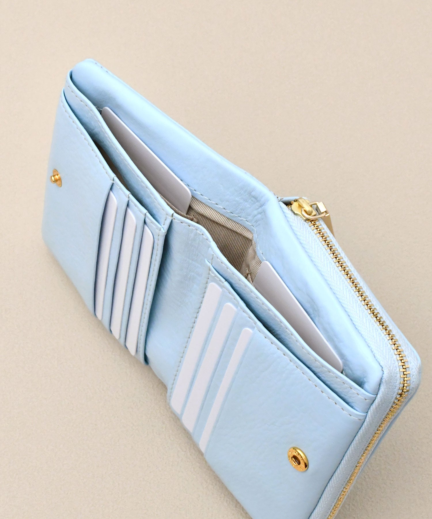 ハーフサイズでもカードポケットが充実。一度に見渡せるのでさっと取り出せるのもポイントです。
