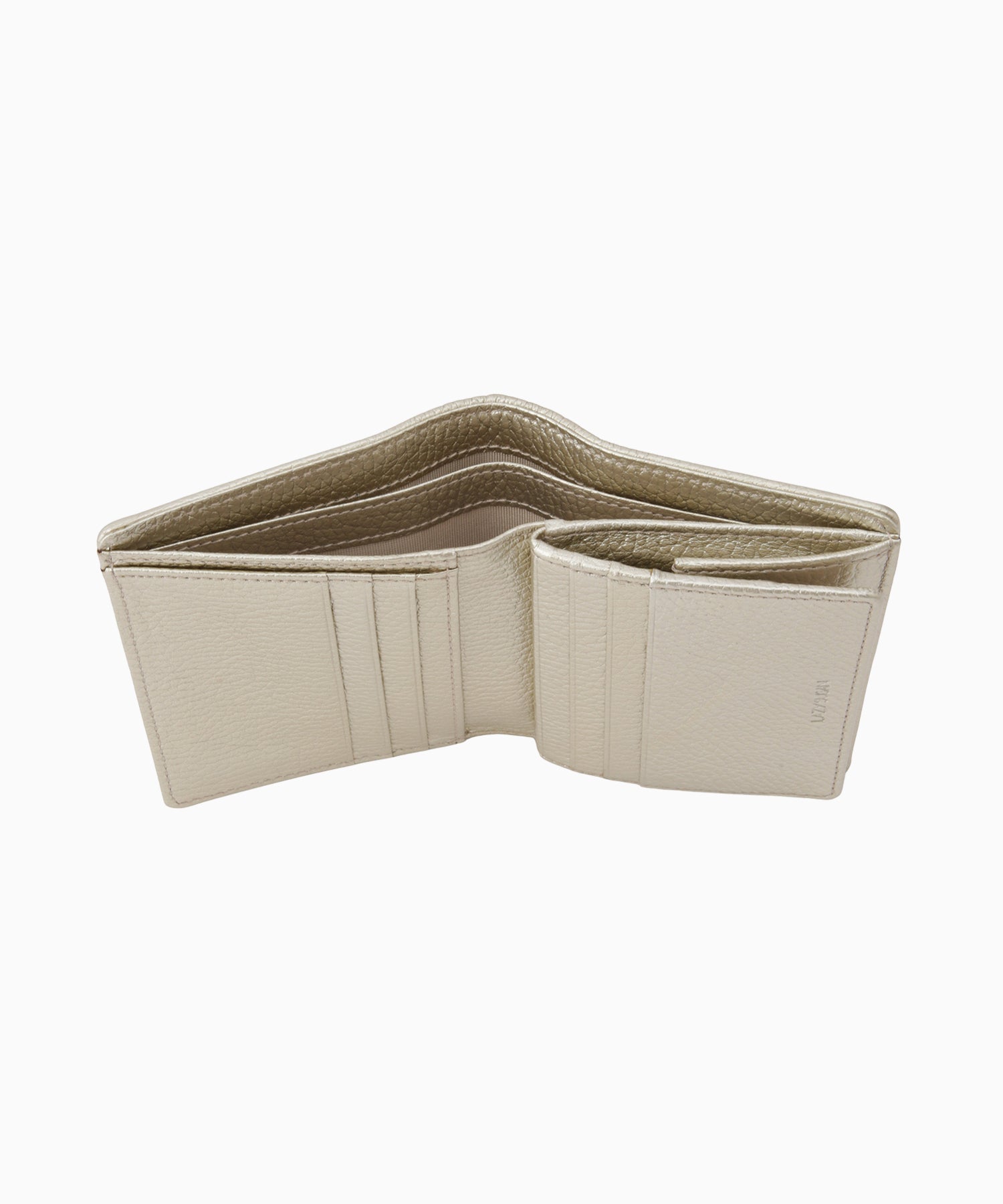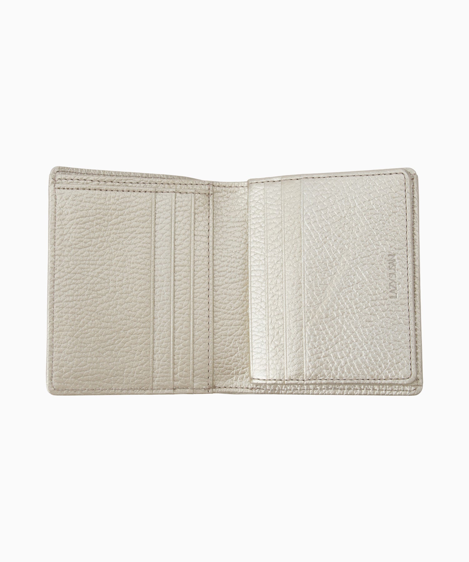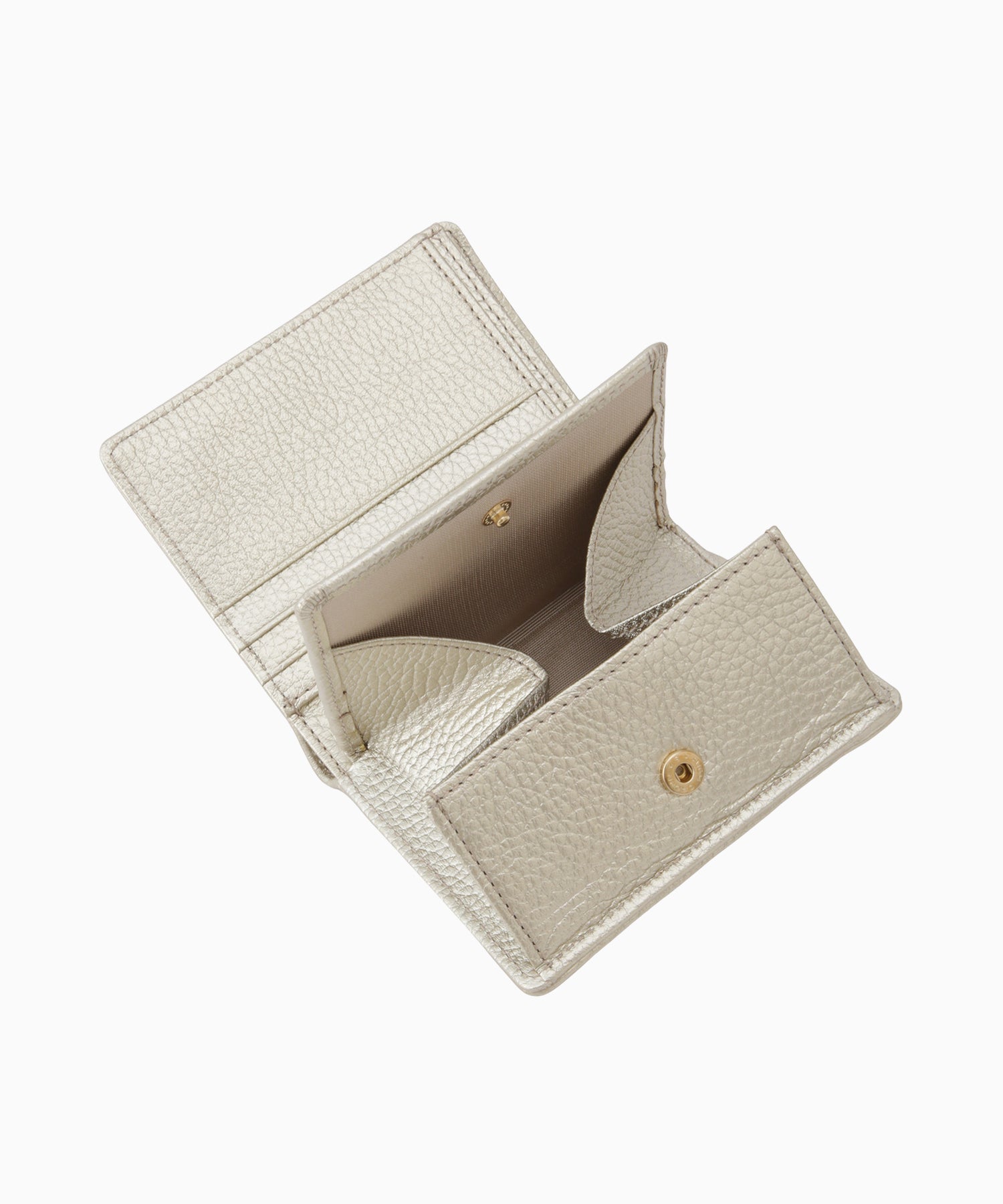 コンパクトさと収納力を両方備えた二つ折りデザイン。留めのボタンを付けていないので、急いでいてもさっと開くことができます。