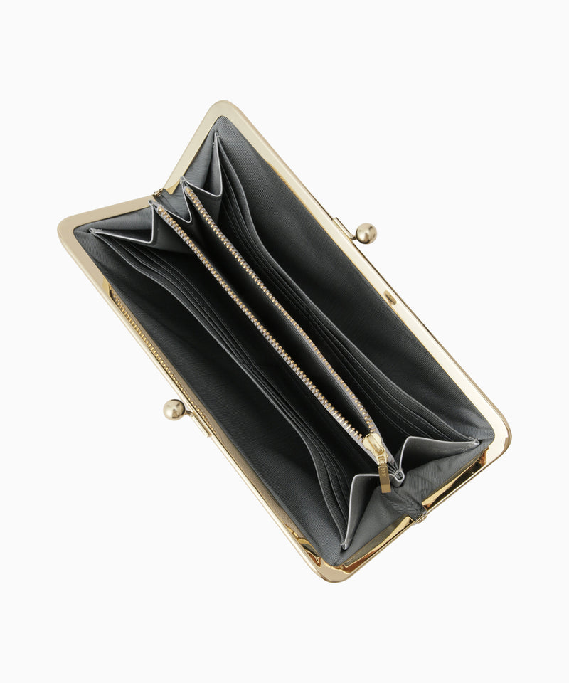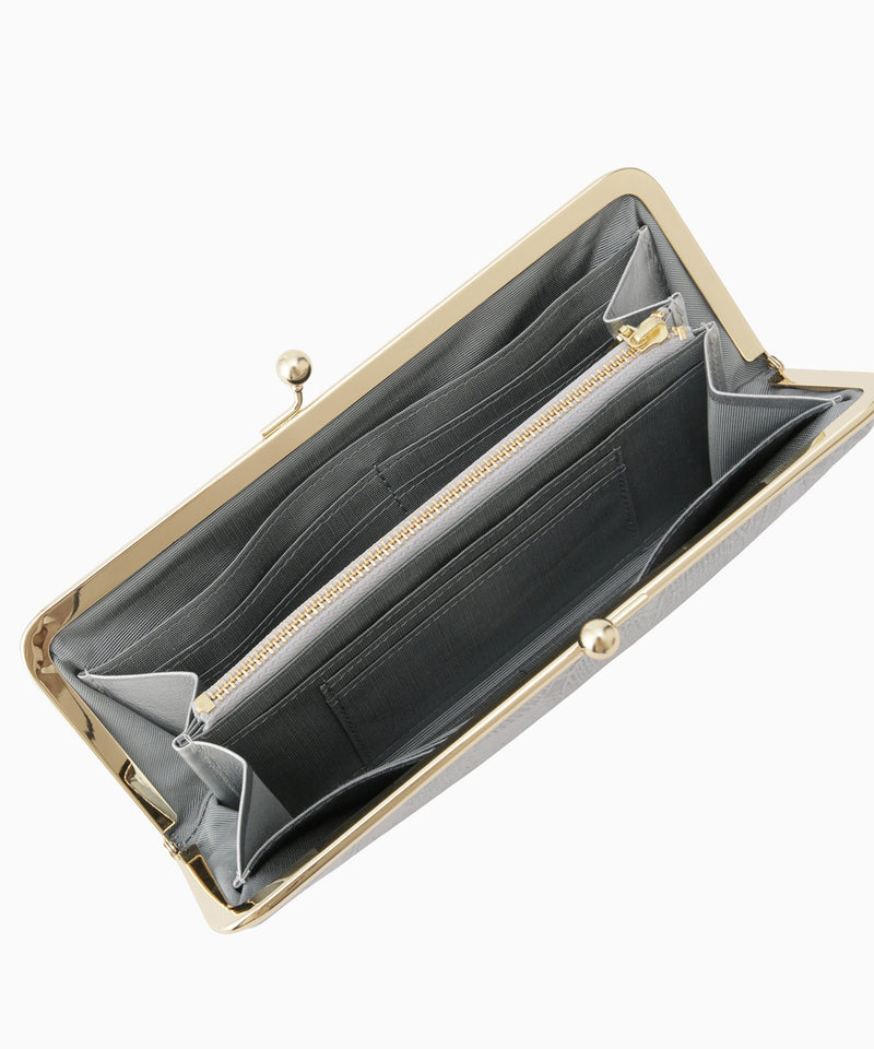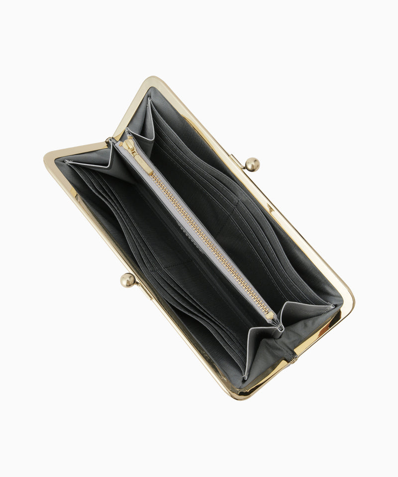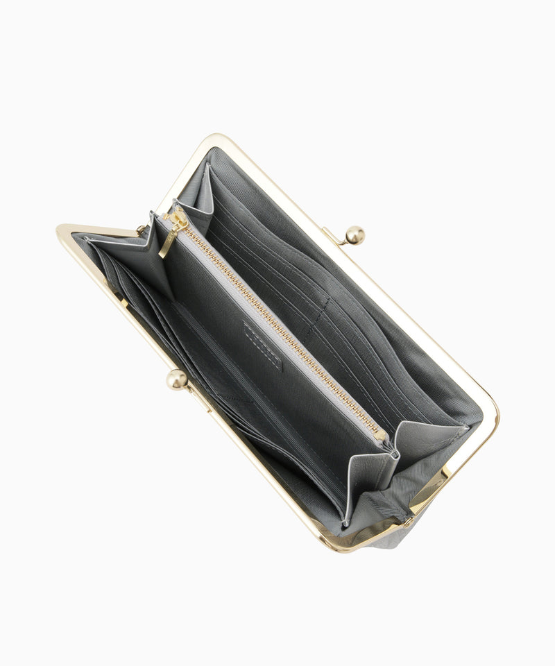 ワイドながま口は、大きく開いて取り出しやすいのがポイント。閉じれば厚みが抑えられ、見た目よりもすっきりと持つことができます。