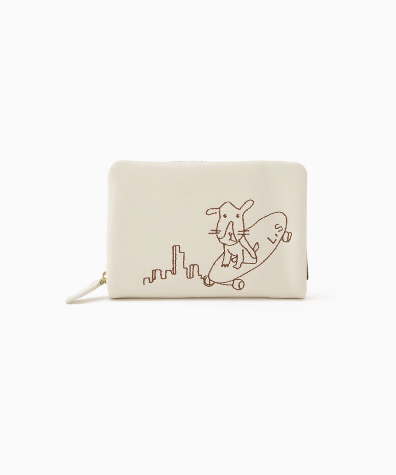 ふかふかのレザーにスケボーに乗った生意気なワンコを刺繍しました。お財布を取り出すたびに思わず笑顔がこぼれる、小さな楽しみを日常にプラスします。コンパクトなサイズでも収納力抜群。愛嬌あるデザインが毎日の気分を明るく彩ります。