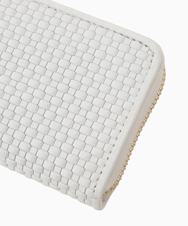 編み込み模様を立体的に表現した型押しレザーが特徴のマルチコインケース。ツヤ感をのせた格子柄が醸し出す上質感。