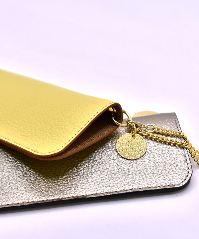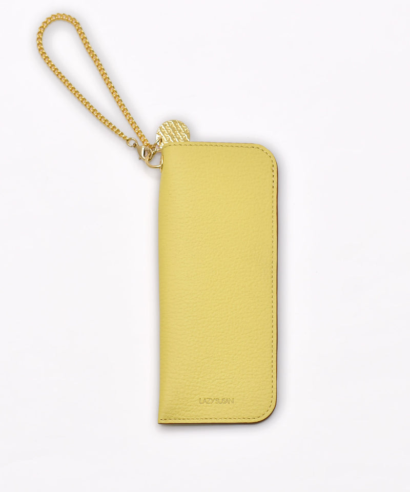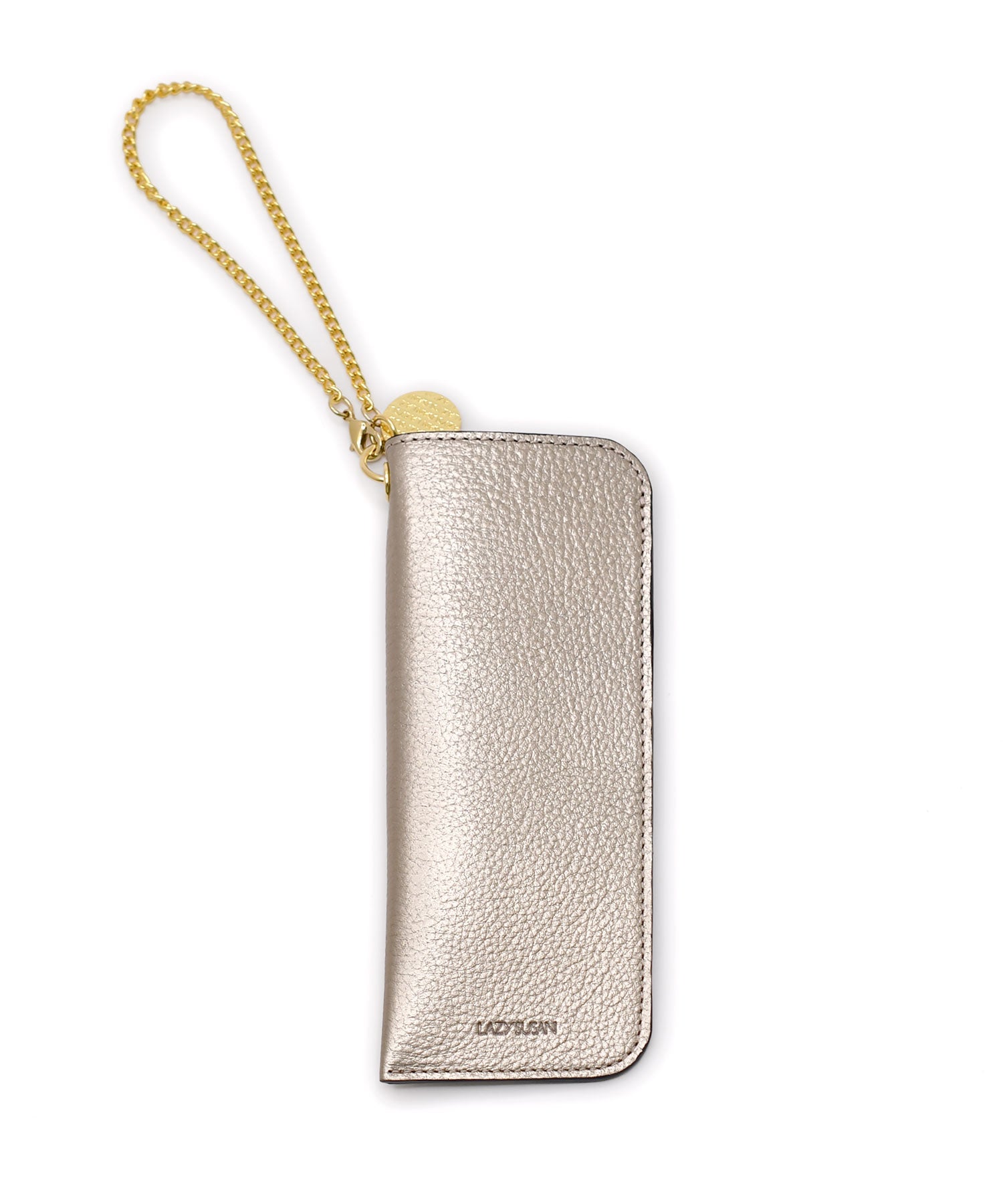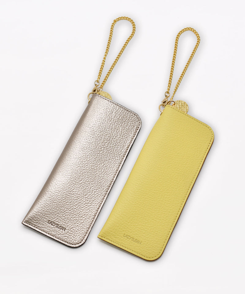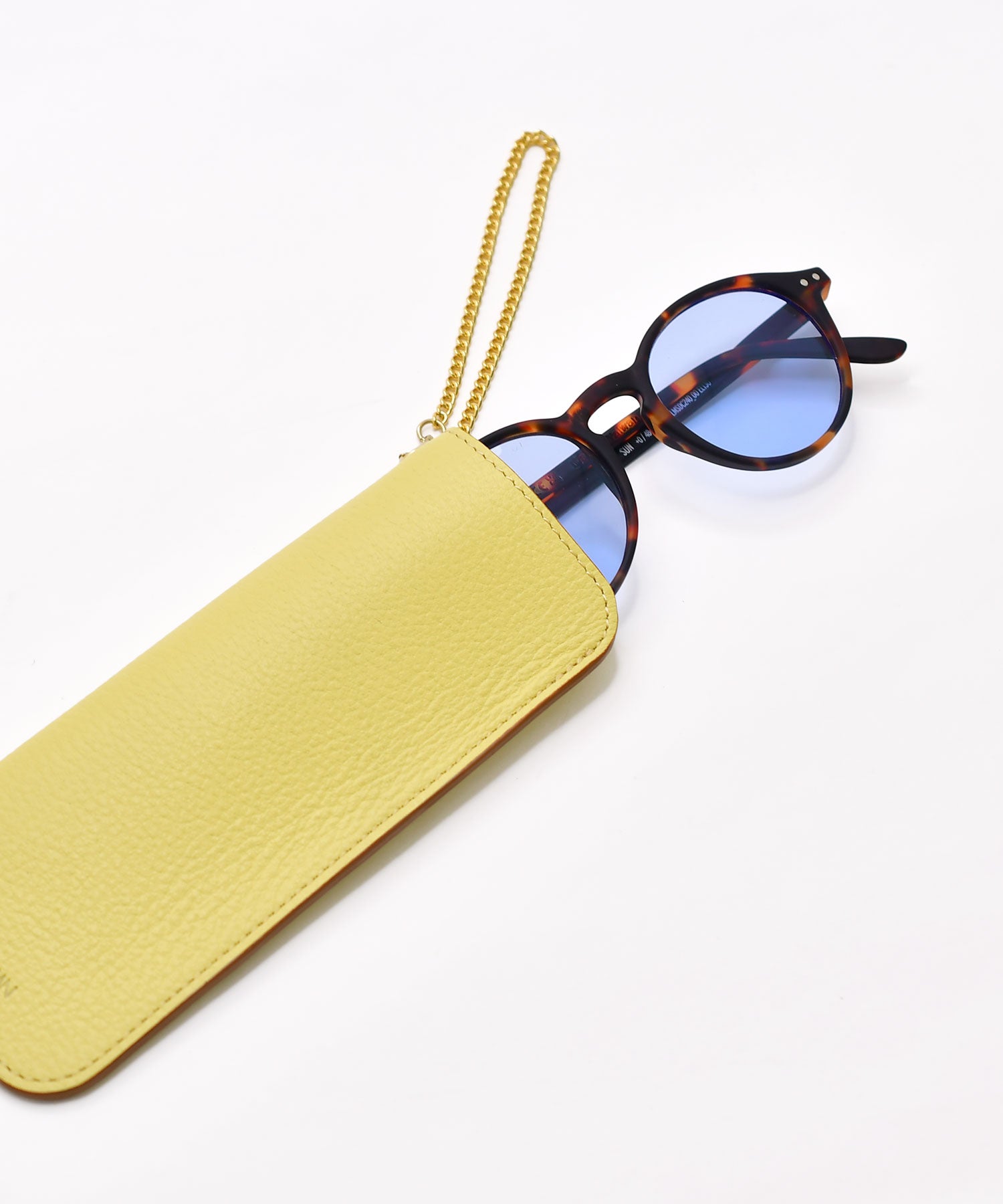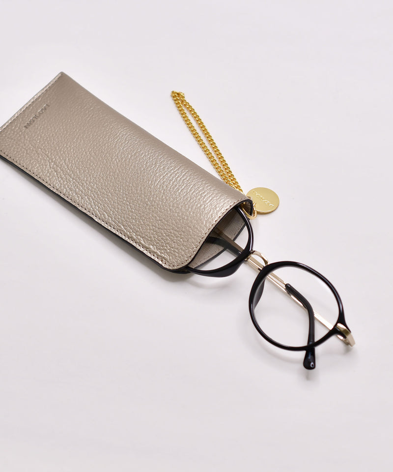 差し込むだけのシンプルなメガネケース。バッグに下げて、お買物やレストランのオーダーなどさっと使いたいときに便利。