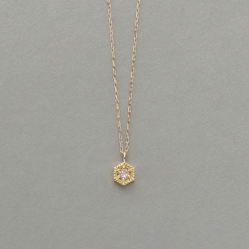 六角フォルムと華奢なデザインが華やかなダイヤの輝きを引き立てます。