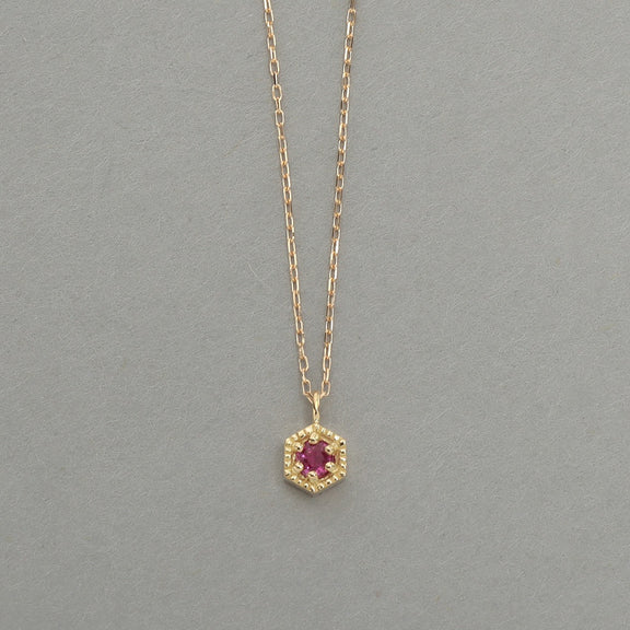 六角フォルムと華奢なデザインが神々しいルビーの輝きを引き立てます。