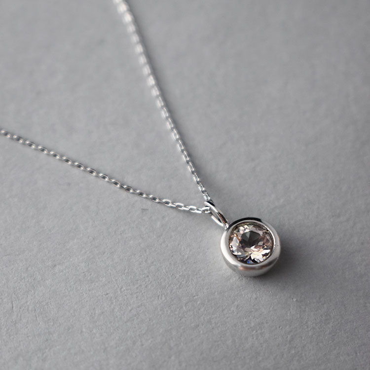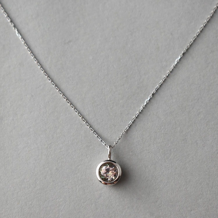 トパーズを通り抜けるクリアな光が美しいネックレス。存在感と透明感を両立させた大人のジュエリーコーディネートが楽しめます。