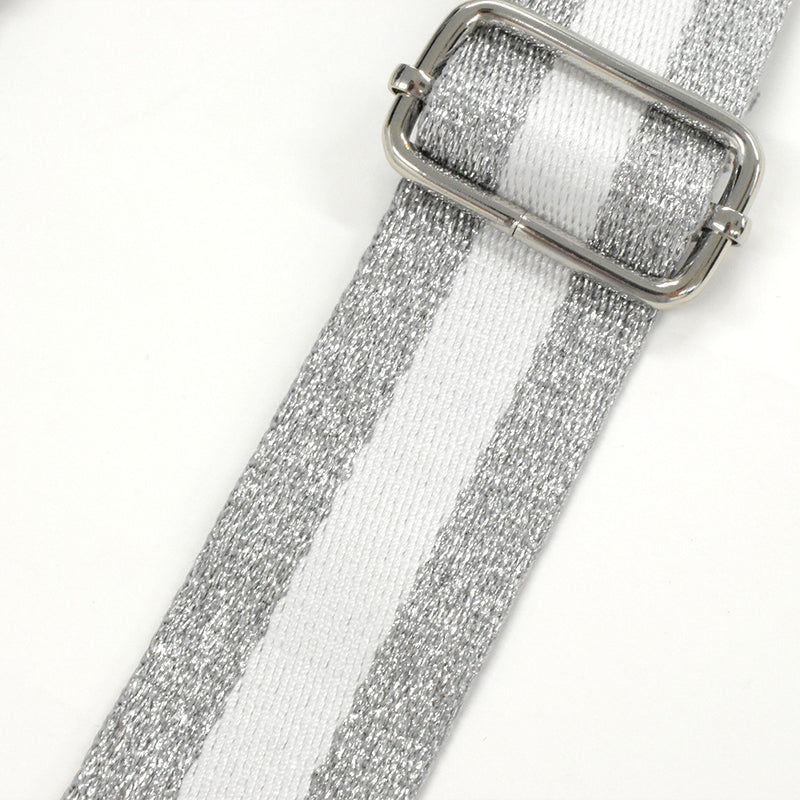 煌めきがまぶしいシルバー×ホワイト。シンプルなバッグならベルトが主役に、メタリックやグリッターのバッグなら思い切り派手さを楽しんで。