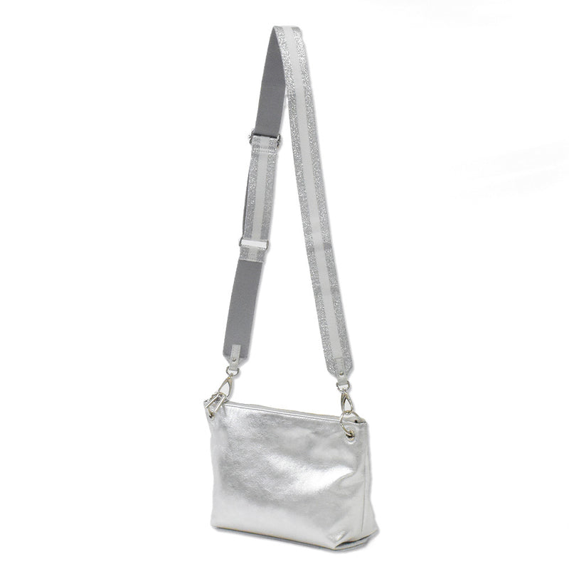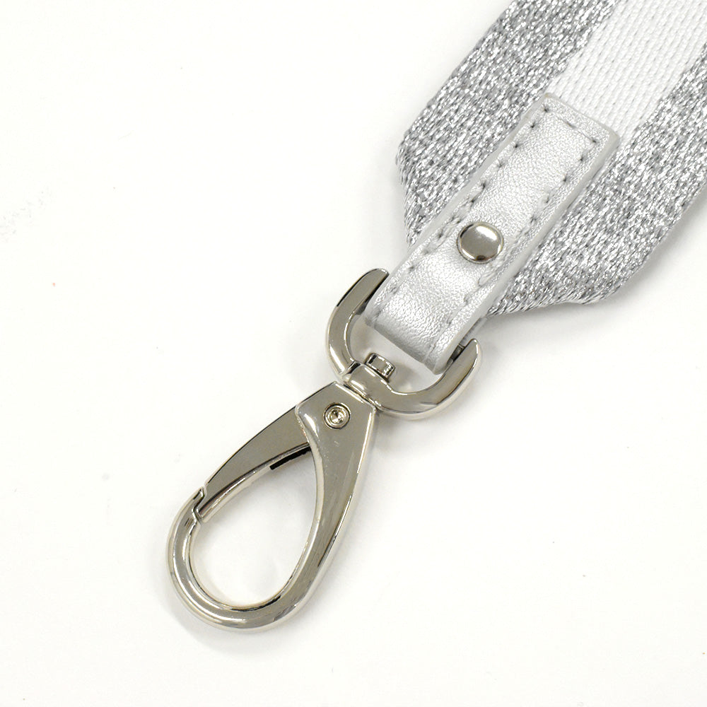 金具の色はシルバーです。取り外し可能なショルダーベルトが付いているバッグに付け替えてお使いいただけます。