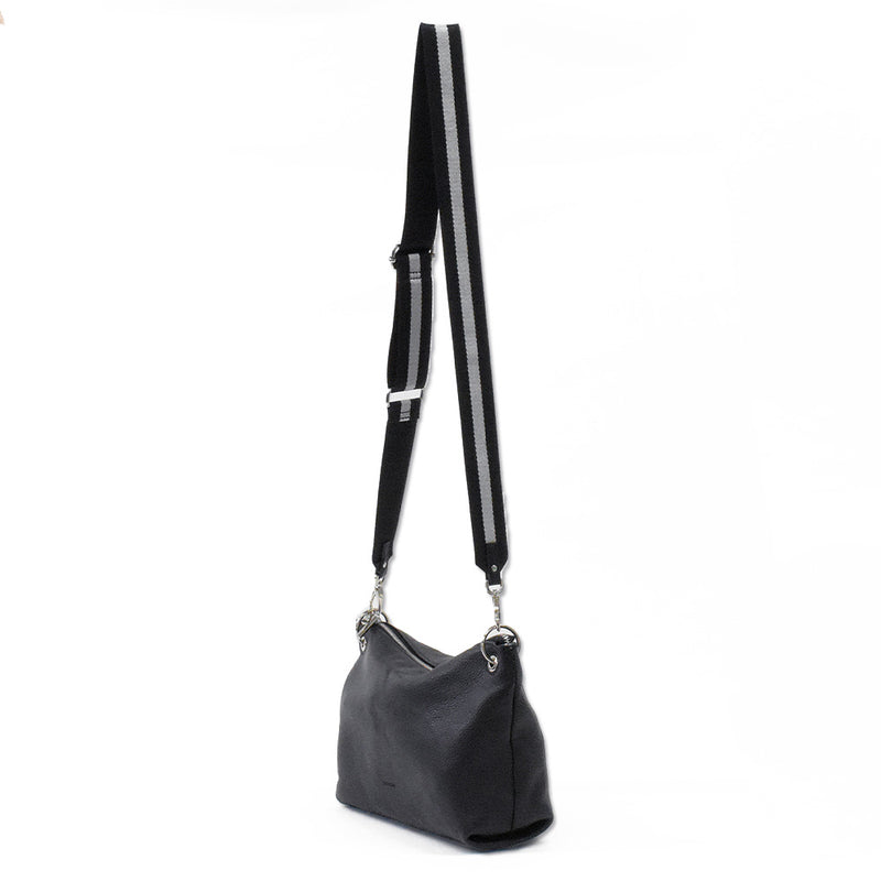 ブラック×シルバーでベーシックカラーのバッグもお出かけや旅行にあうカジュアルな印象へ。