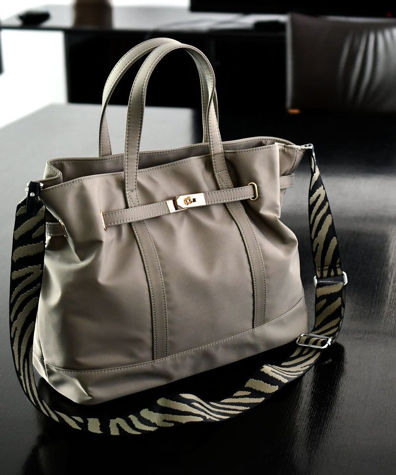 太めで肩に掛けやすいバッグ用ショルダーベルト。いつものバッグに取り付けて印象をガラリとチェンジ。
