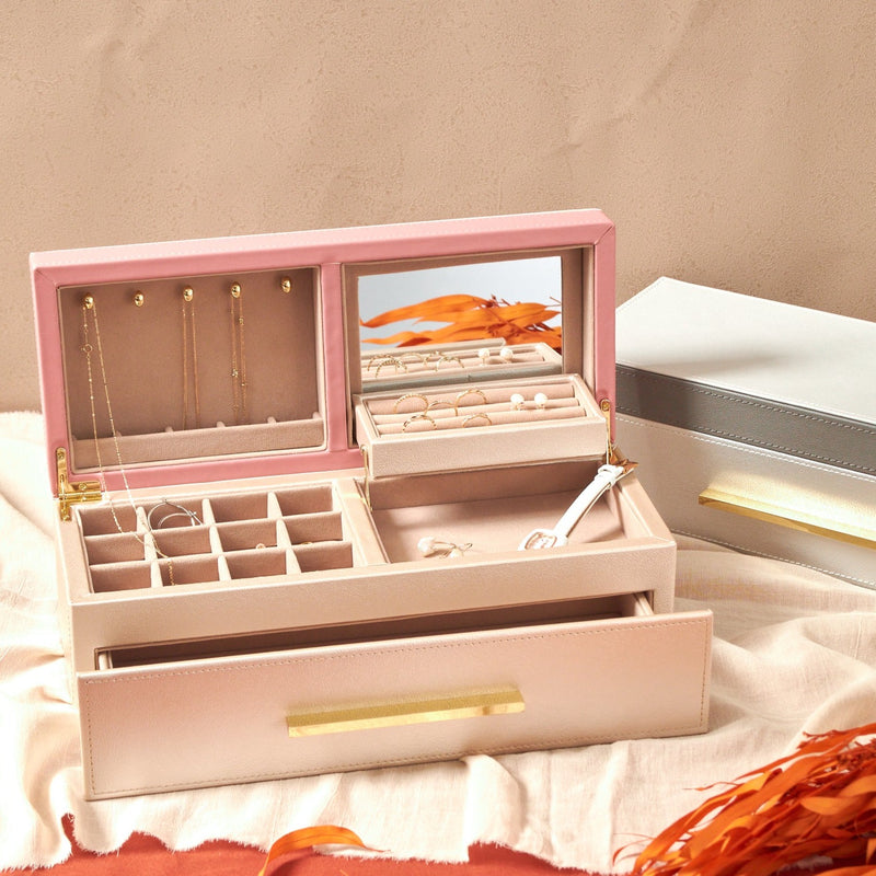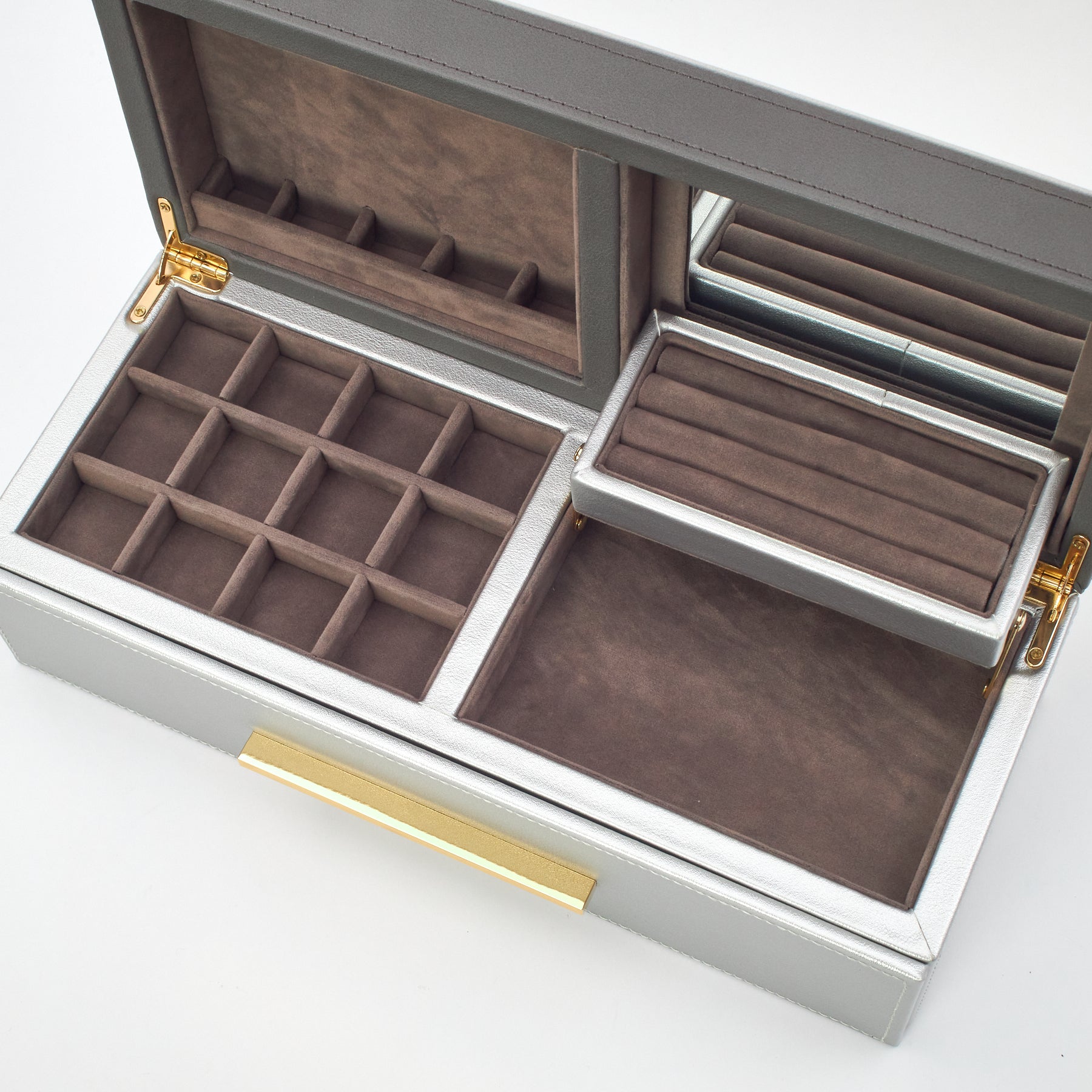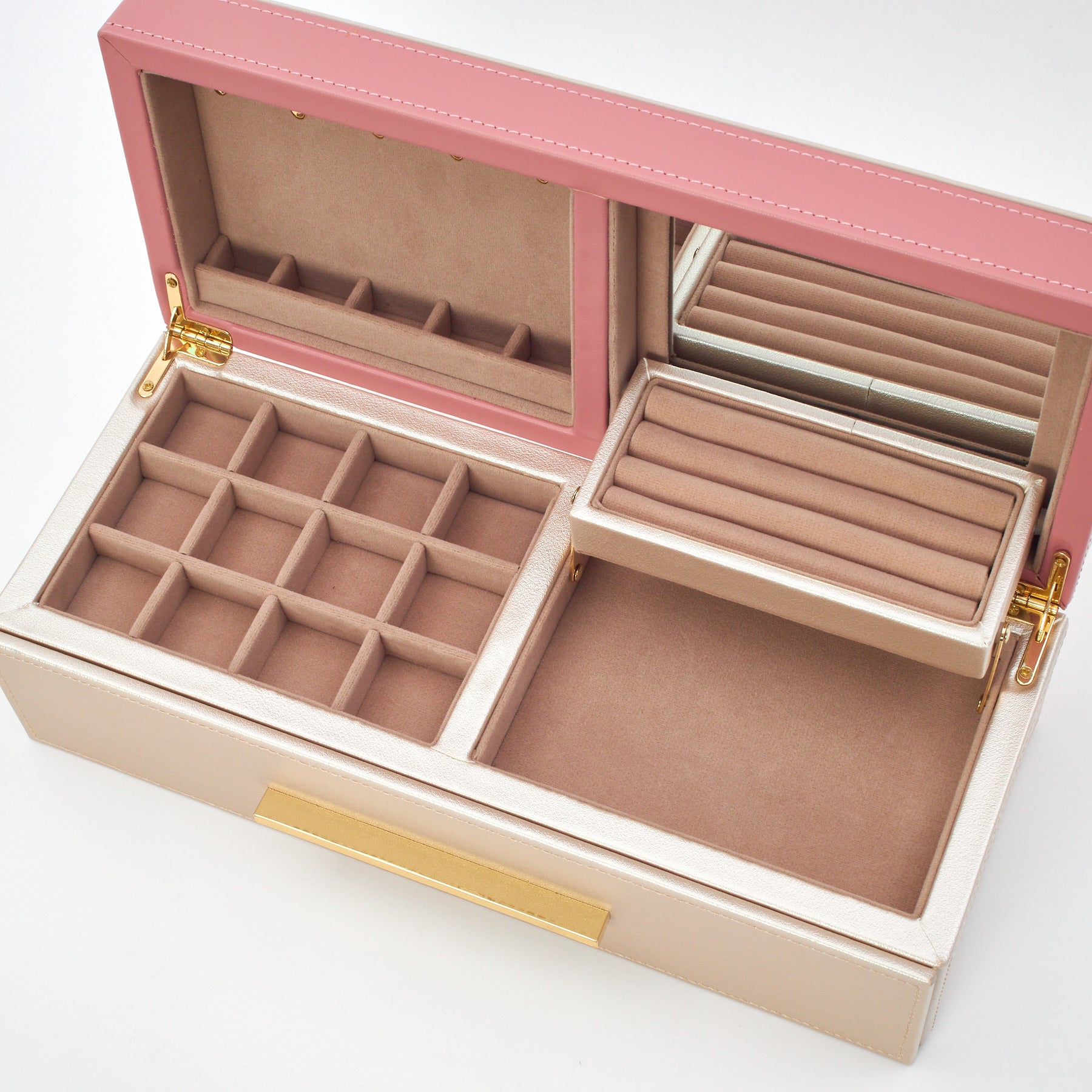 男性のリングやカフスボタンなども収納可能なので、ご夫婦やカップルで仲良く一緒にお使いいただけます。