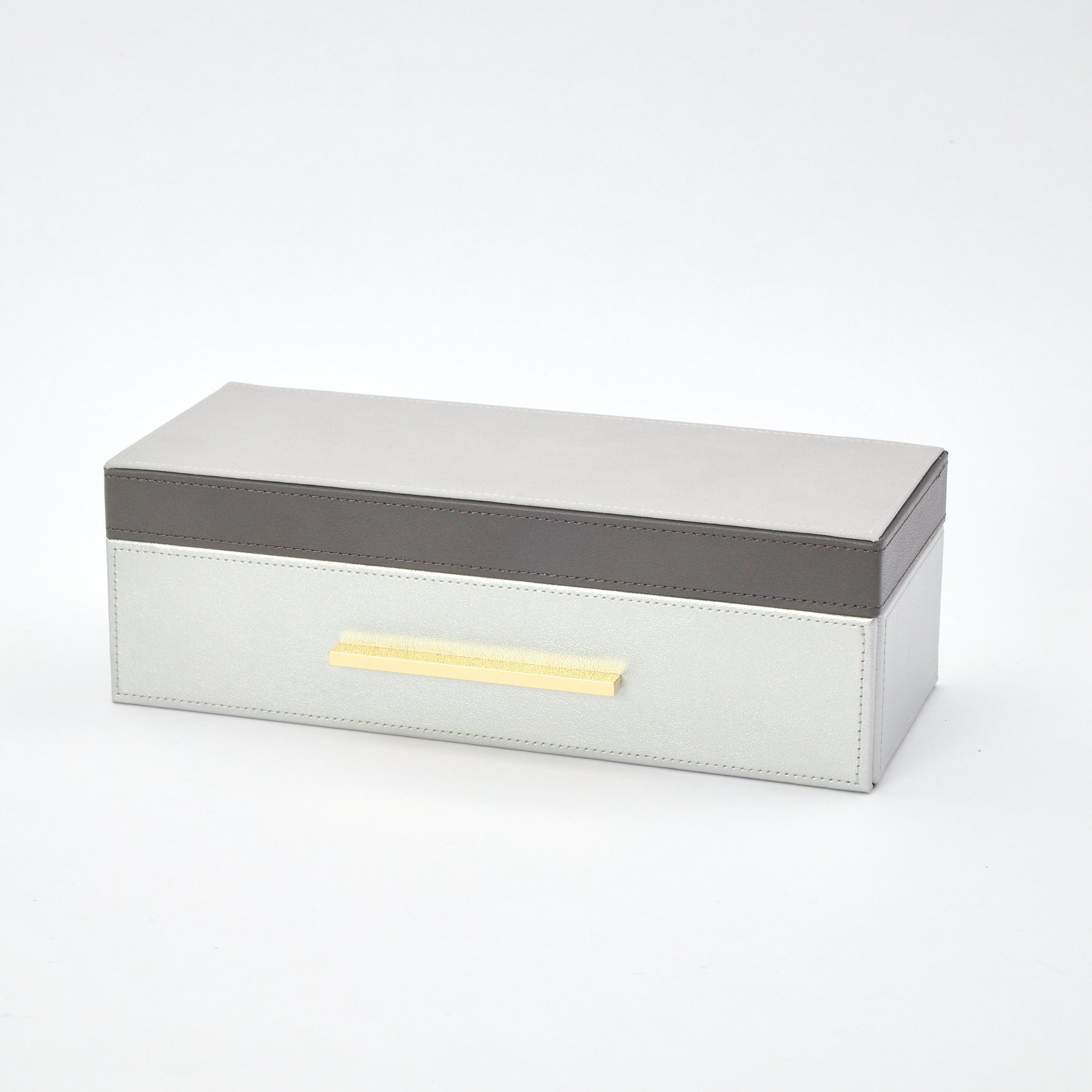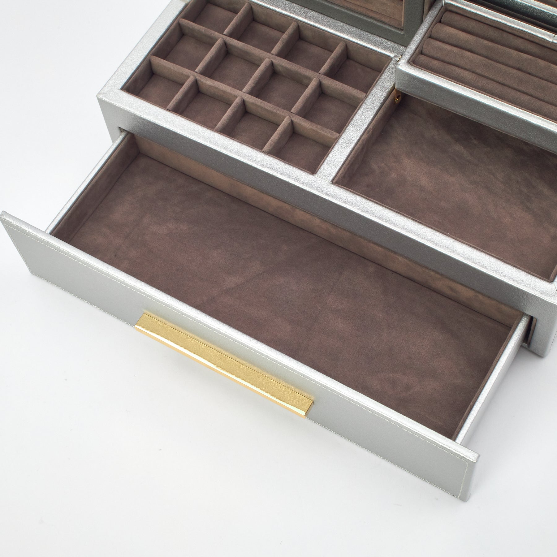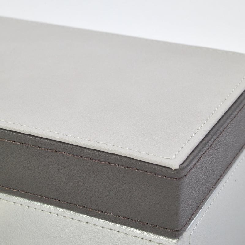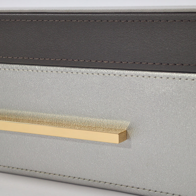 マット&シャイニーなレザー調に仕上げたジュエリーボックス。洗練された大人のインテリアを叶えます。