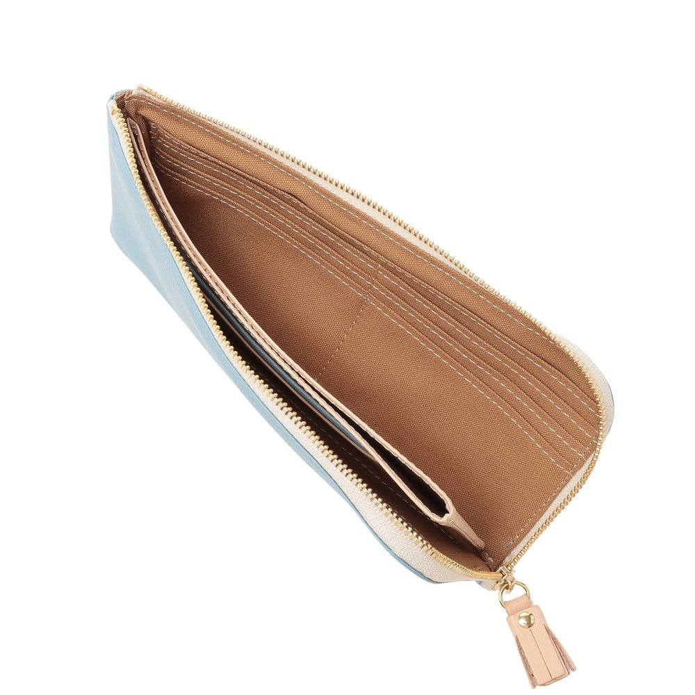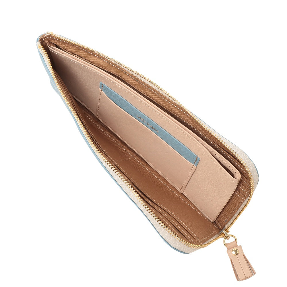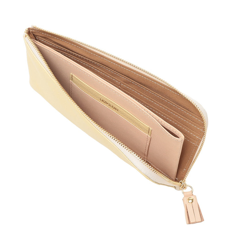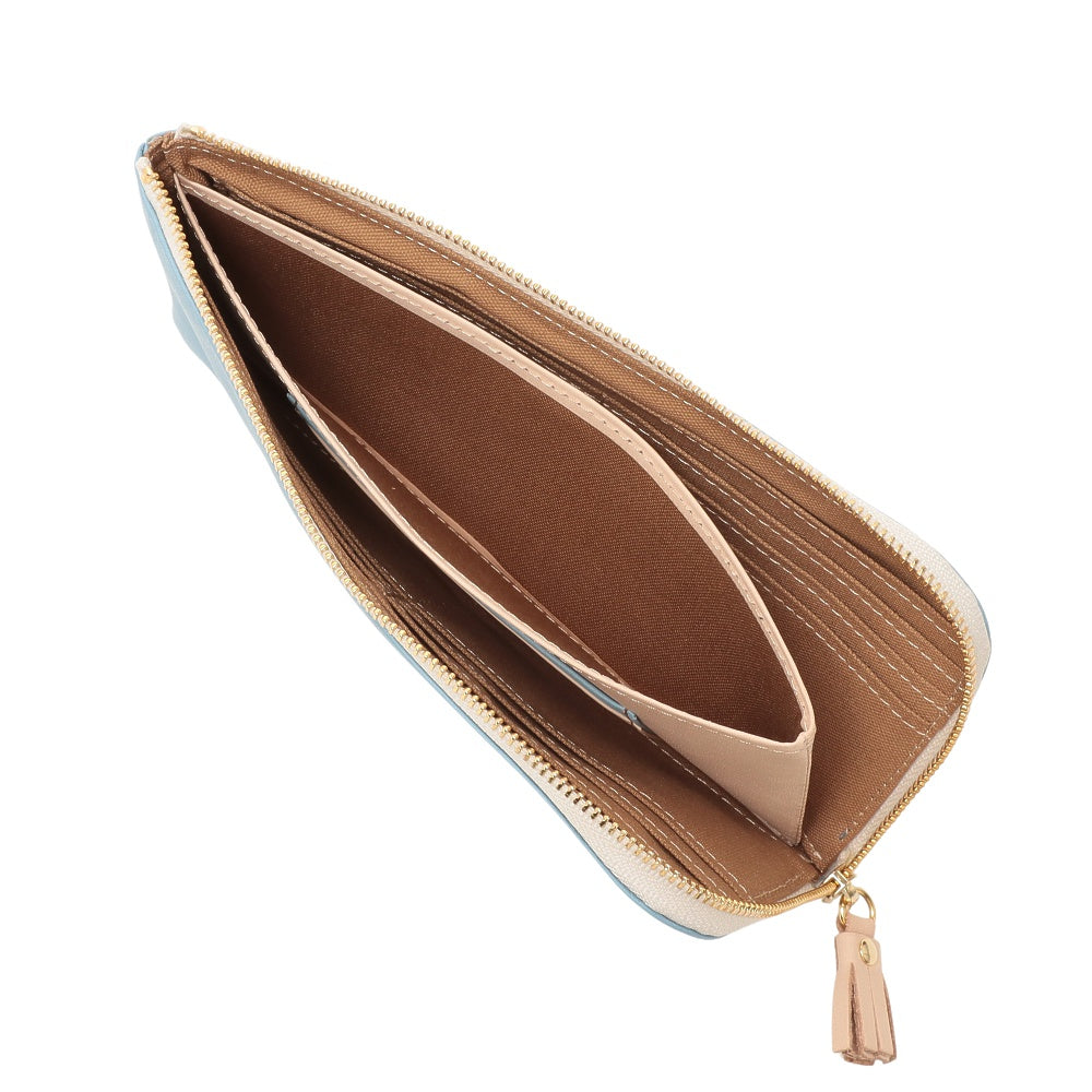 手軽に出し入れができることで人気のL 字型ファスナータイプです。中央のコインポケットが大きく開き、見渡しやすく取り出しやすい仕様。