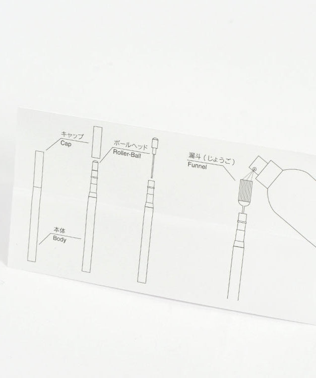 ボールヘッドを引き上げ、付属のスポイトでフレグランスを入れてください。芯がフレグランスを吸い込むまで数分置いてから使い始めていただくとスムーズにボールが転がります。