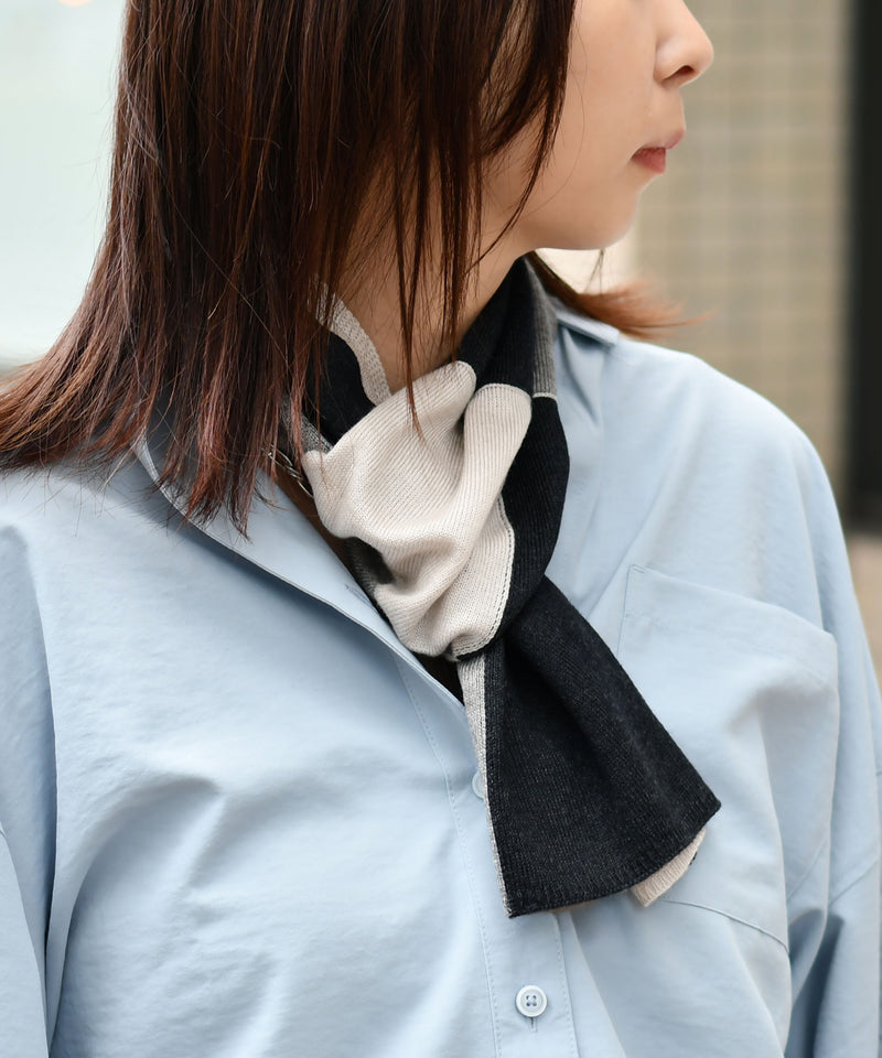 リバーシブルデザインで気分に合わせて楽しめる薄手マフラー。手軽に差し込むだけでコーデがパッと華やかに。薄く軽やかな素材感が軽快な印象をプラスします。簡単に着けられ、一瞬でおしゃれ上級者に。