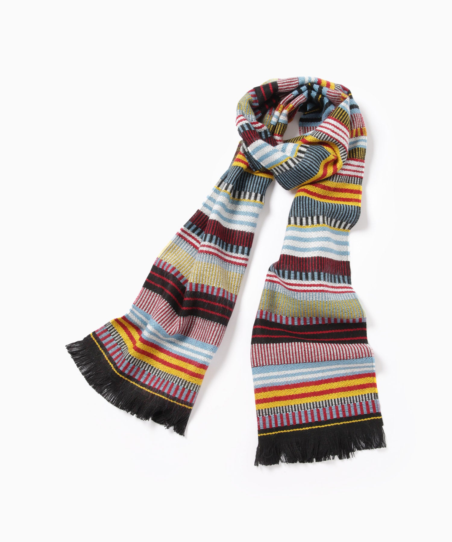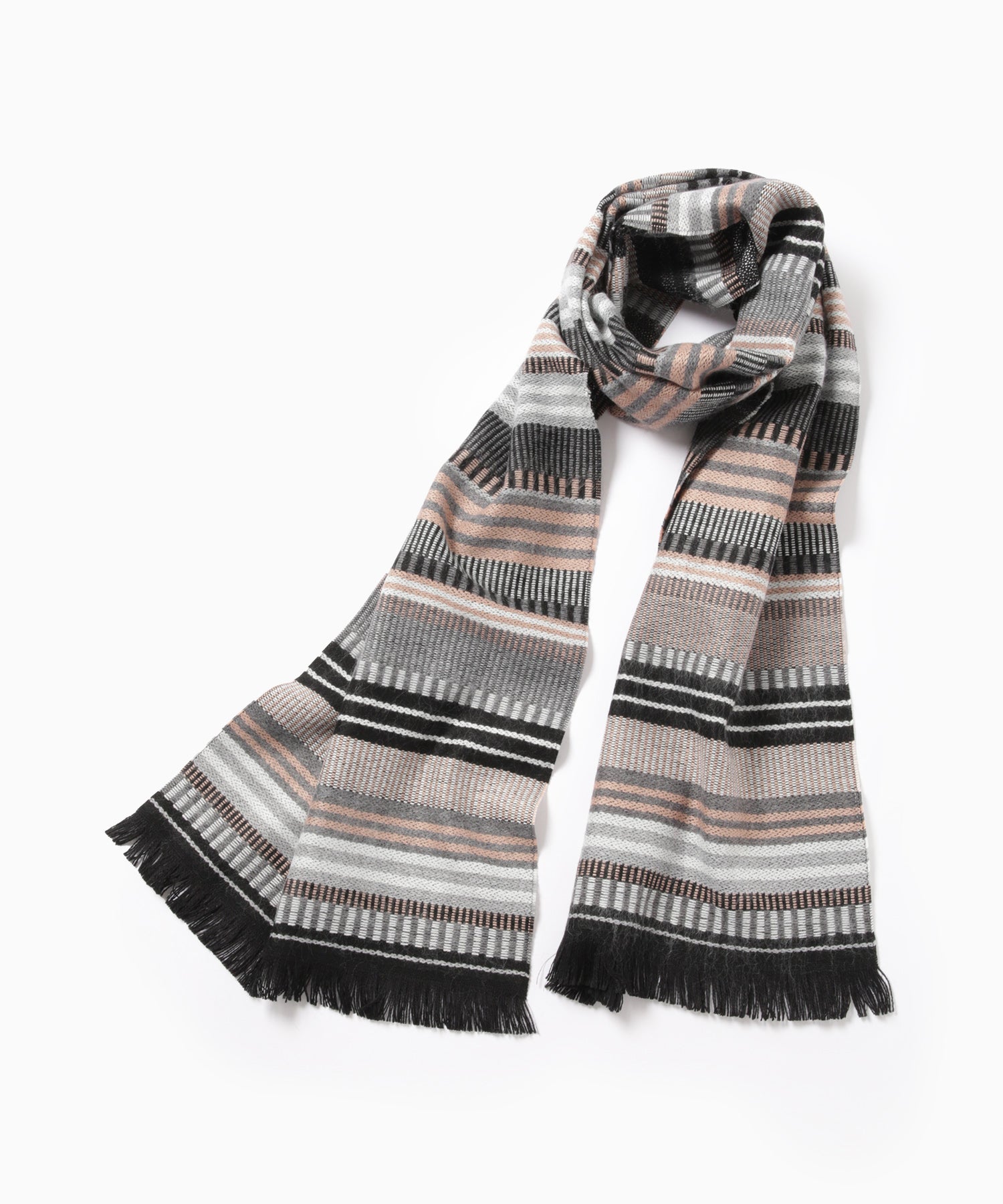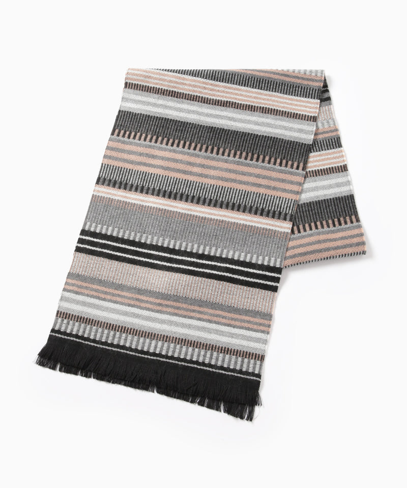 フランス製のボーダー柄マフラー。ウール混素材で、秋冬のコーデに心地よい暖かさをプラスしてくれます。
