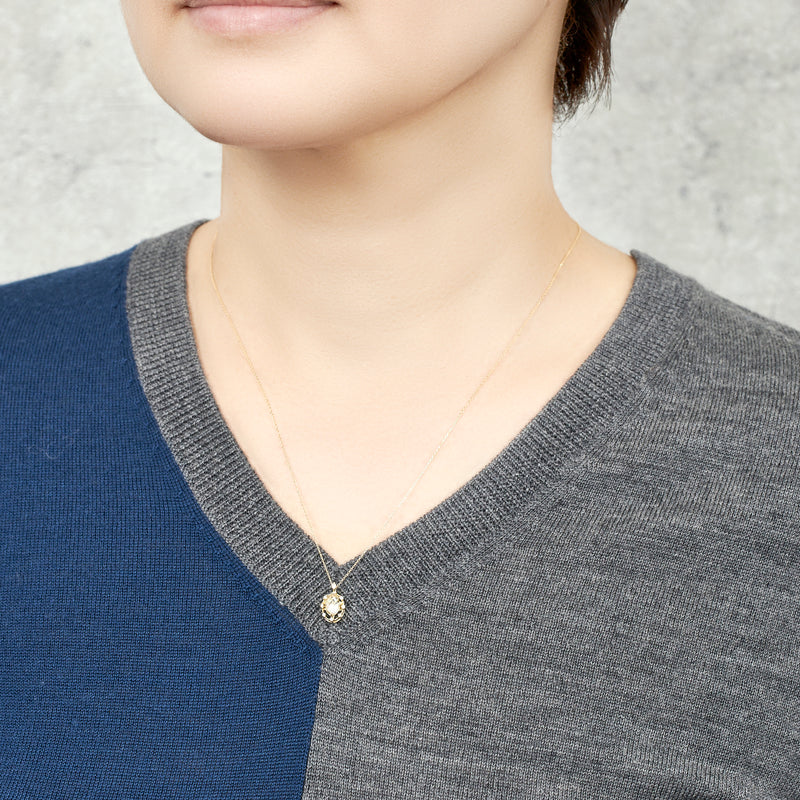 ふたつの言葉の意味を込めた神秘的な輝きをもつネックレス。