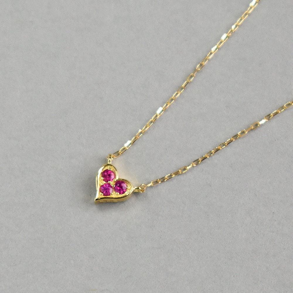 ダイヤモンドとルビーをリバーシブルで楽しめる、愛らしさ溢れるハートモチーフネックレス。