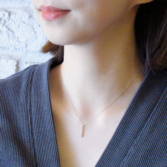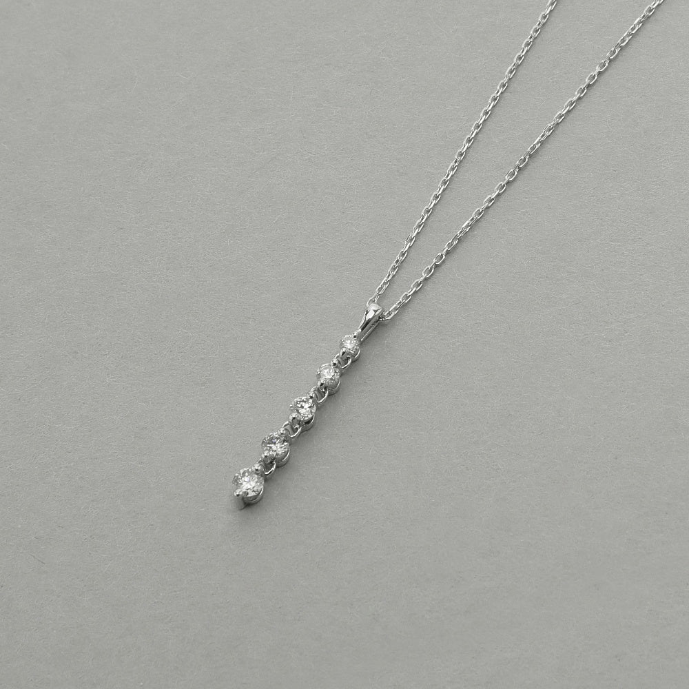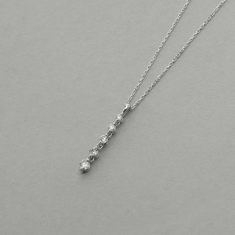 グラデーション使いのダイヤモンドが輝く縦ラインはデコルテをすっきり見せてくれます。プラチナとダイヤモンド。素材が確かなアイテムは、シンプルに長くご愛用いただけます。