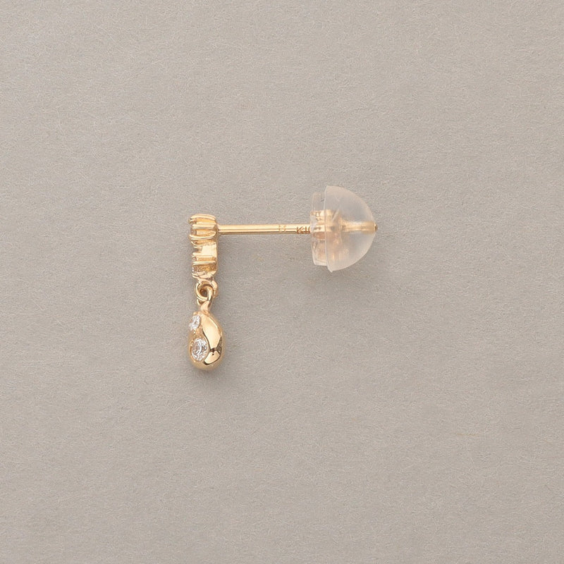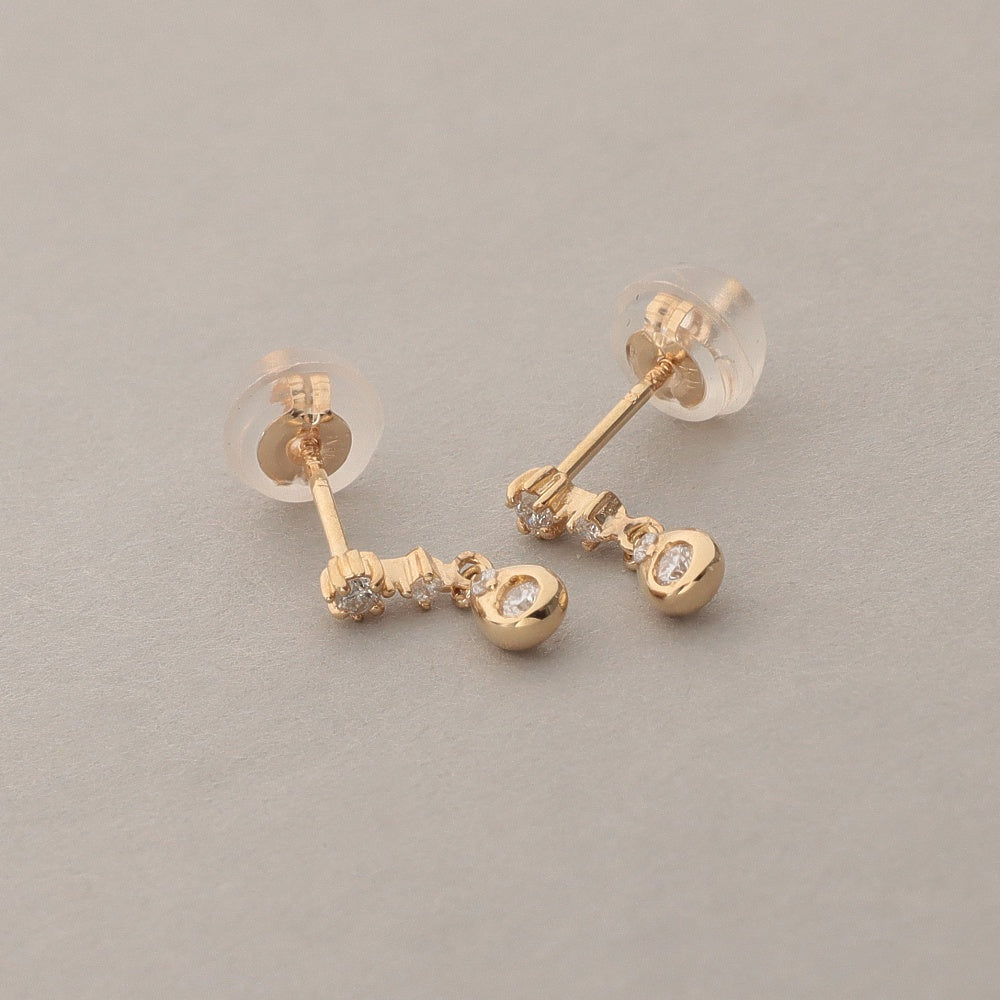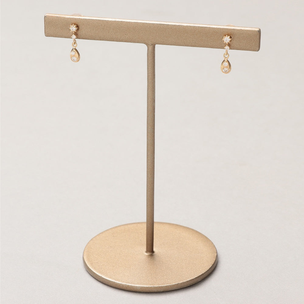 ドロップモチーフが小刻みに揺れるピアス。3つの異なるダイヤセッティングをあわせた遊び心あるデザイン。