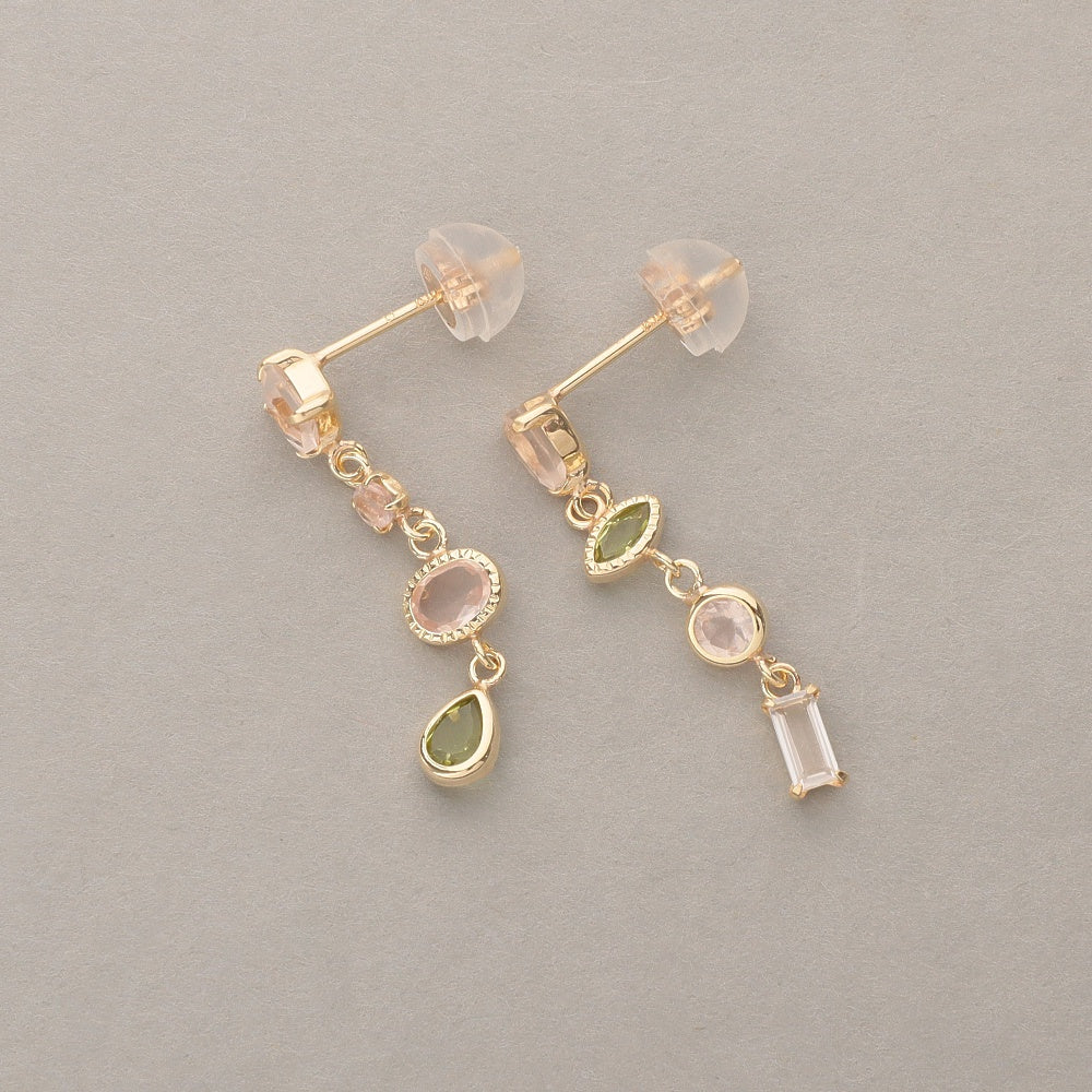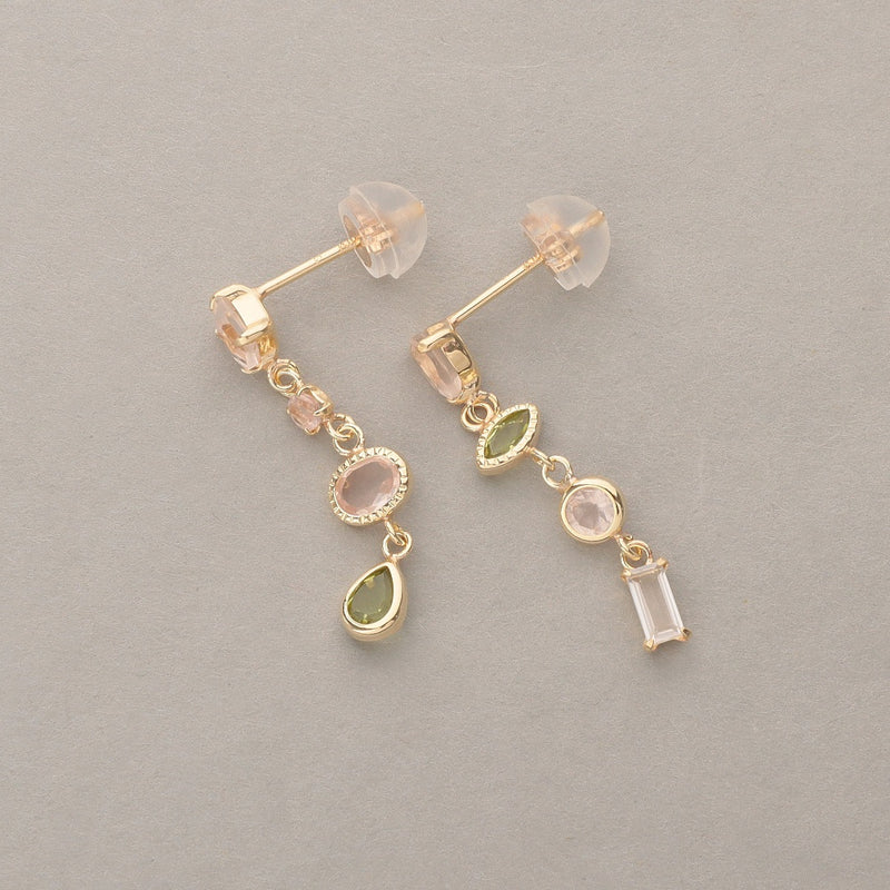一石ずつ異なるカットが施された繊細なデザインが仕草や表情をより美しく引き立てます。桜の花びらのような淡いピンクと透明感が美しいライトグリーンのカラーリング。