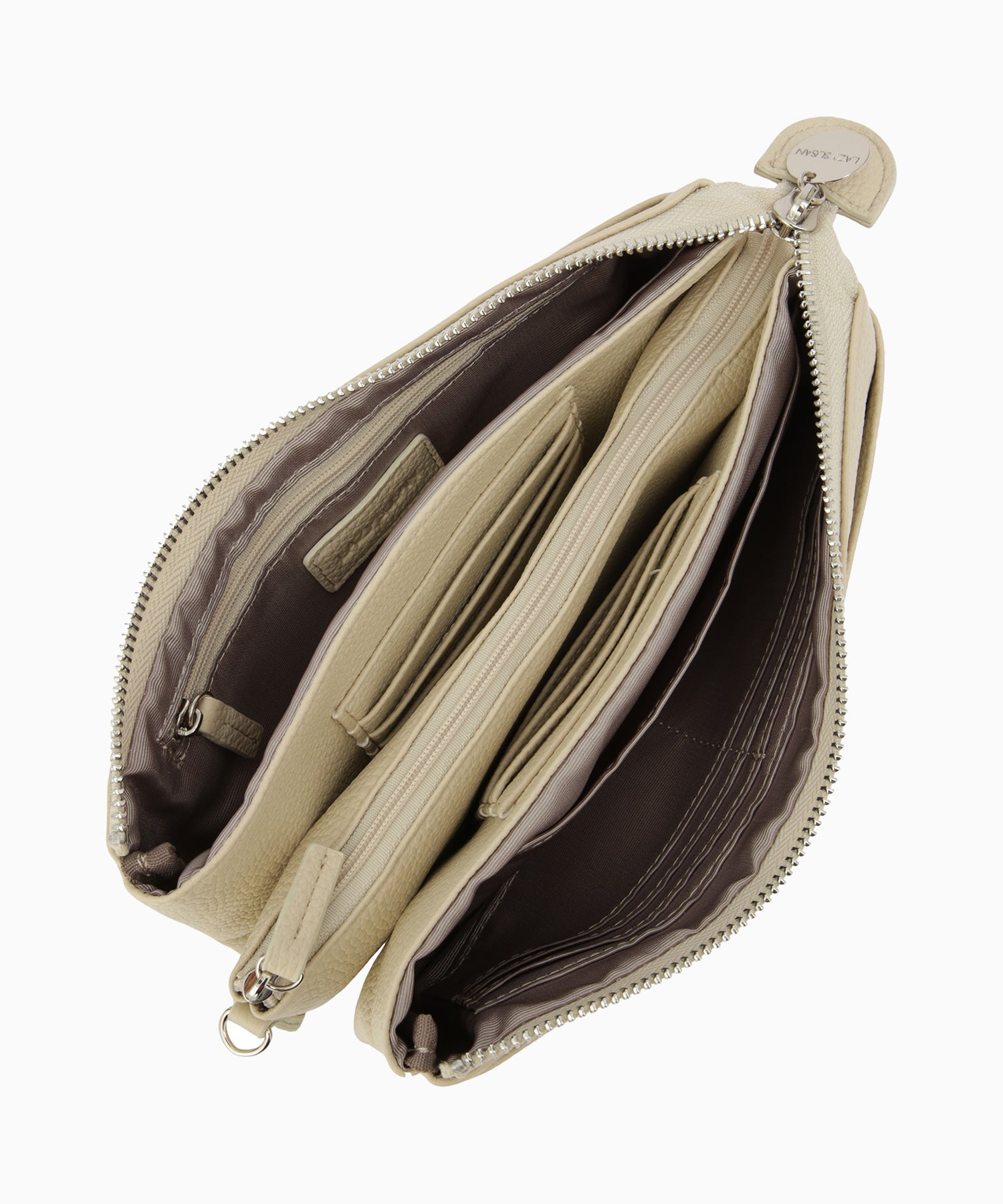 カードポケットやファスナーポケットが充実し、仕切られたスペースで小物もすっきり収納できます。