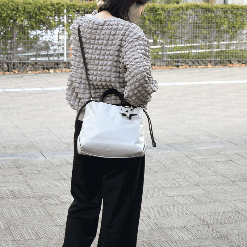 [素材]表地:合成皮革 裏地:ポリエステル ハンドル:合成皮革