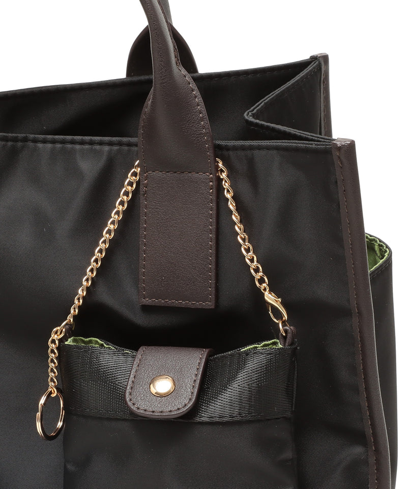 [商品仕様]オープンポケット 2個 ファスナーポケット 1個 インナーポーチ付属 ミニバッグ:カードポケット 3個 キーリング 1個