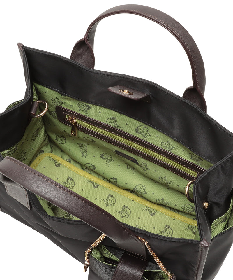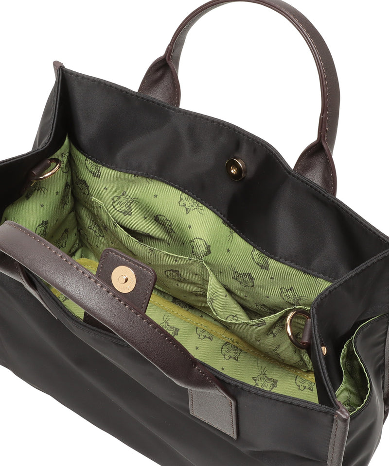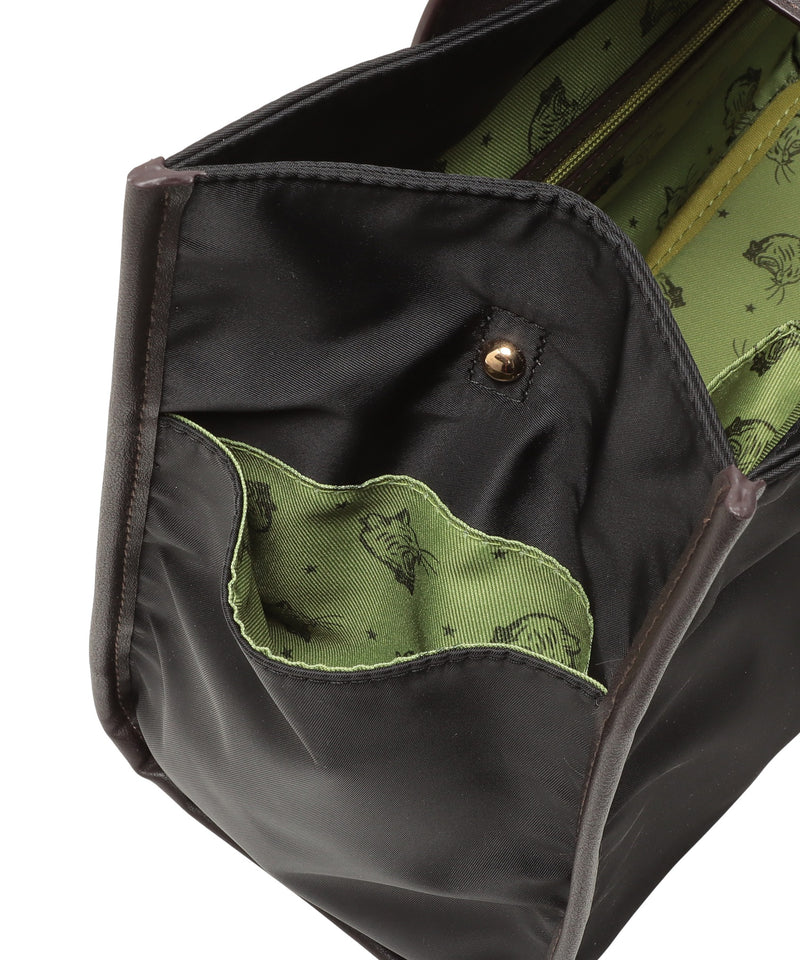 A4サイズが入るので通勤にもおすすすめのたっぷり感。裏地、インナーポーチに大きなあくびをするタロちゃんをプリントしました。