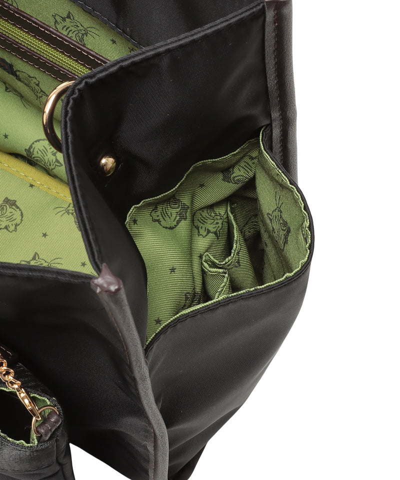 サイドポケットには、ねこ用スティック型おやつポケットも。ペンや扇子など小物入れにもぴったりです。