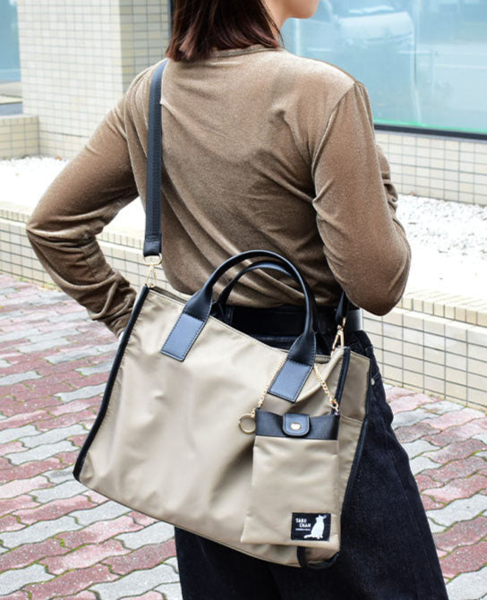 シンプルなナイロントートに[さくらねこタロちゃん]のシルエットが見え隠れ。地域ねことして暮らす、さくら耳のタロちゃんをモデルに、ねことともに過ごす毎日に寄り添うバッグです。