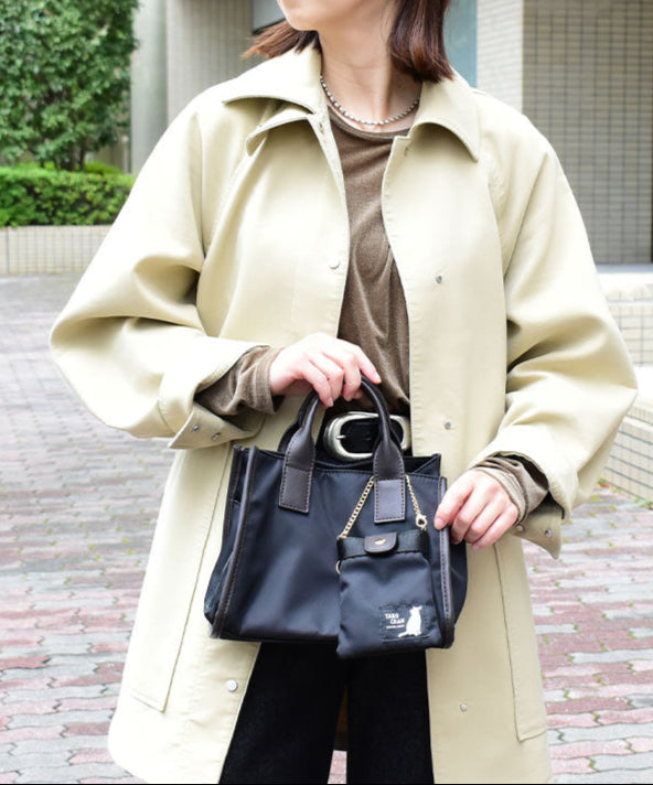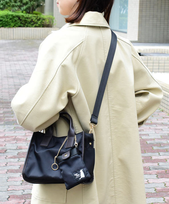 シンプルなナイロントートに[さくらねこタロちゃん]のシルエットが見え隠れ。地域ねことして暮らす、さくら耳のタロちゃんをモデルに、ねことともに過ごす毎日に寄り添うバッグです。
