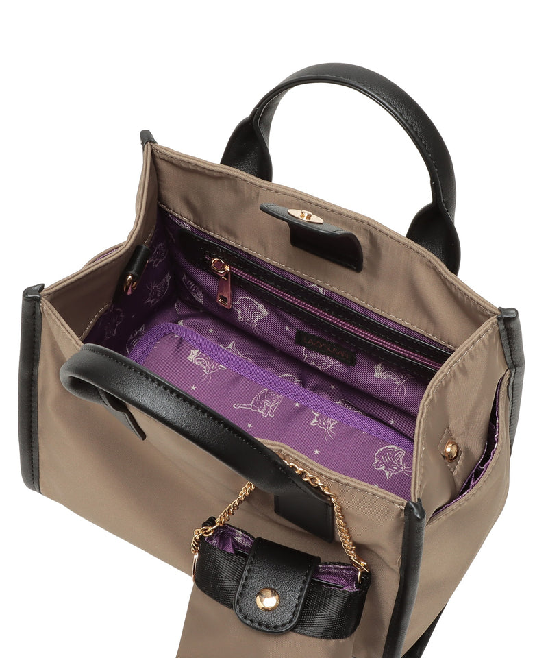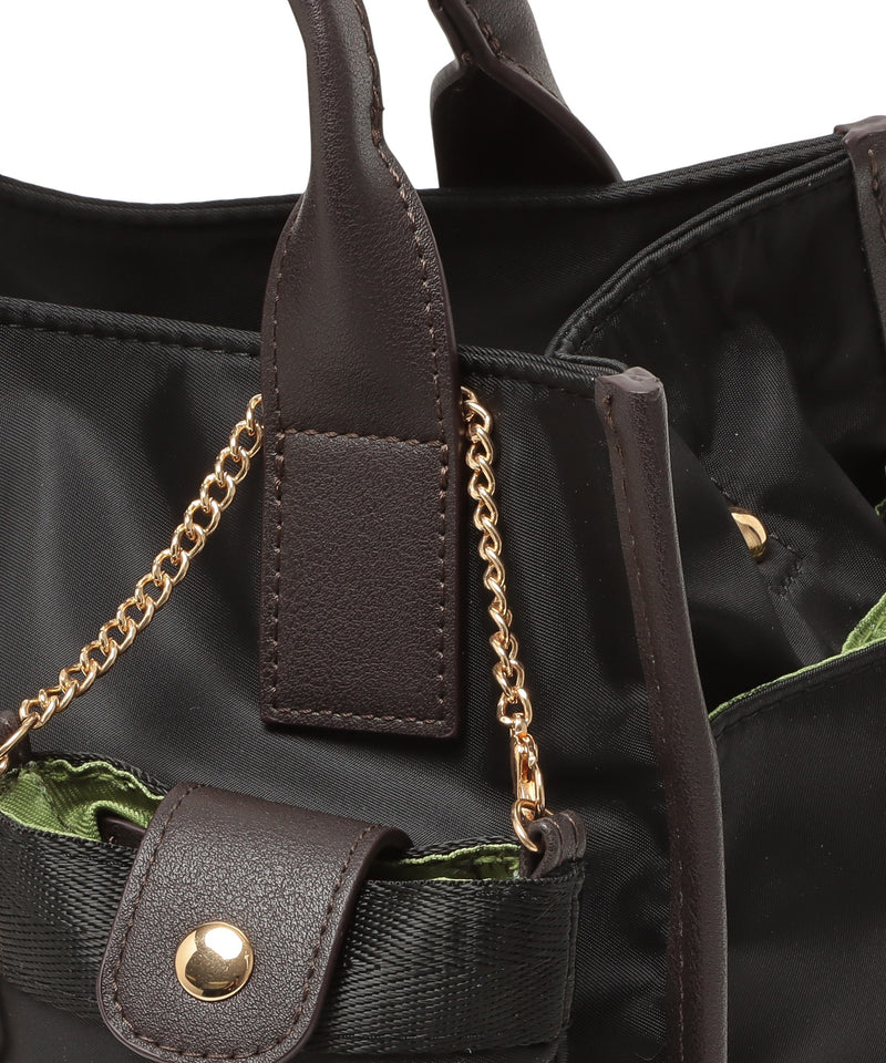 取り外し可能なミニバッグは、カードポケットがついて小物の出し入れに便利です。