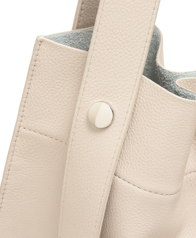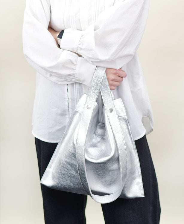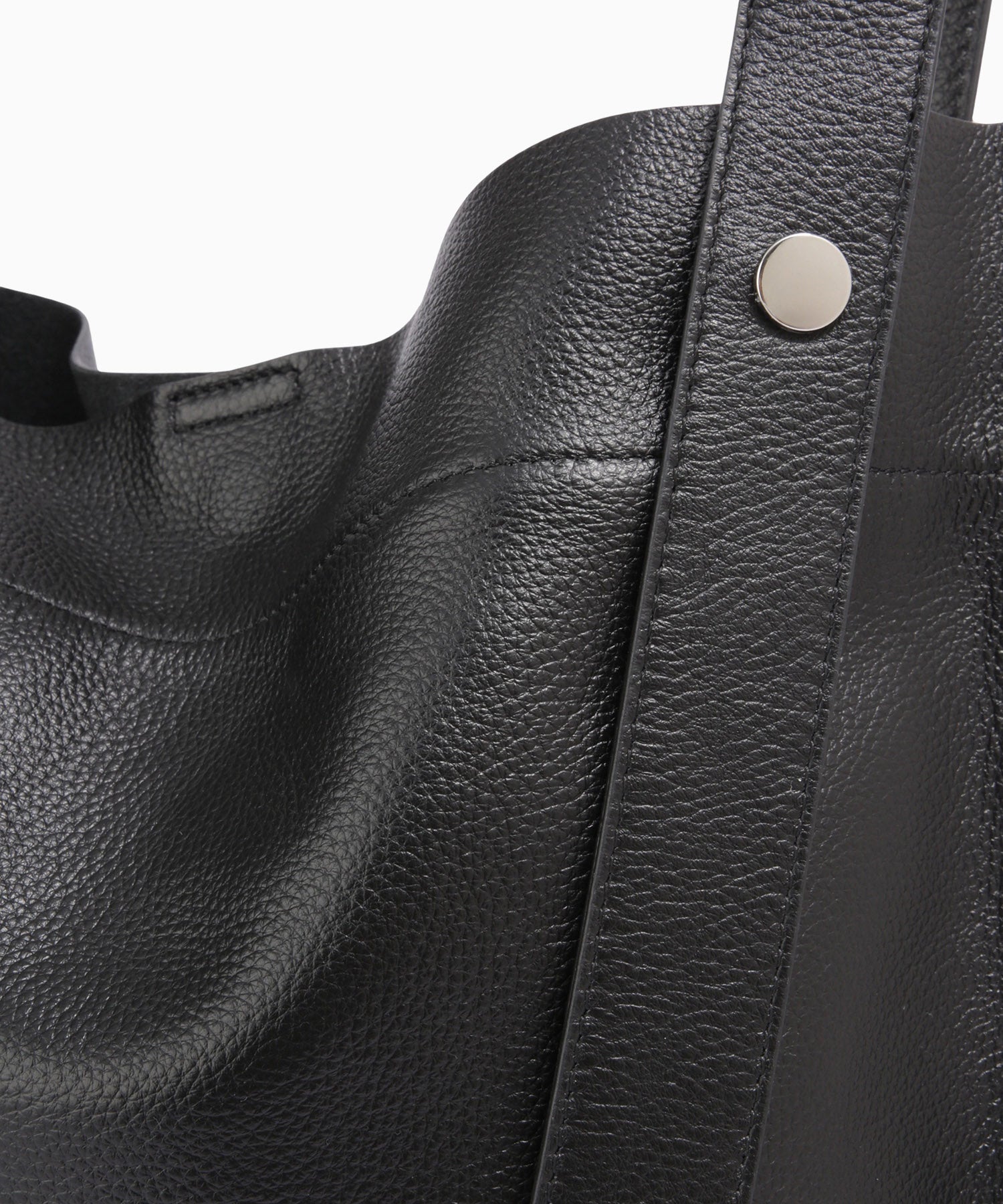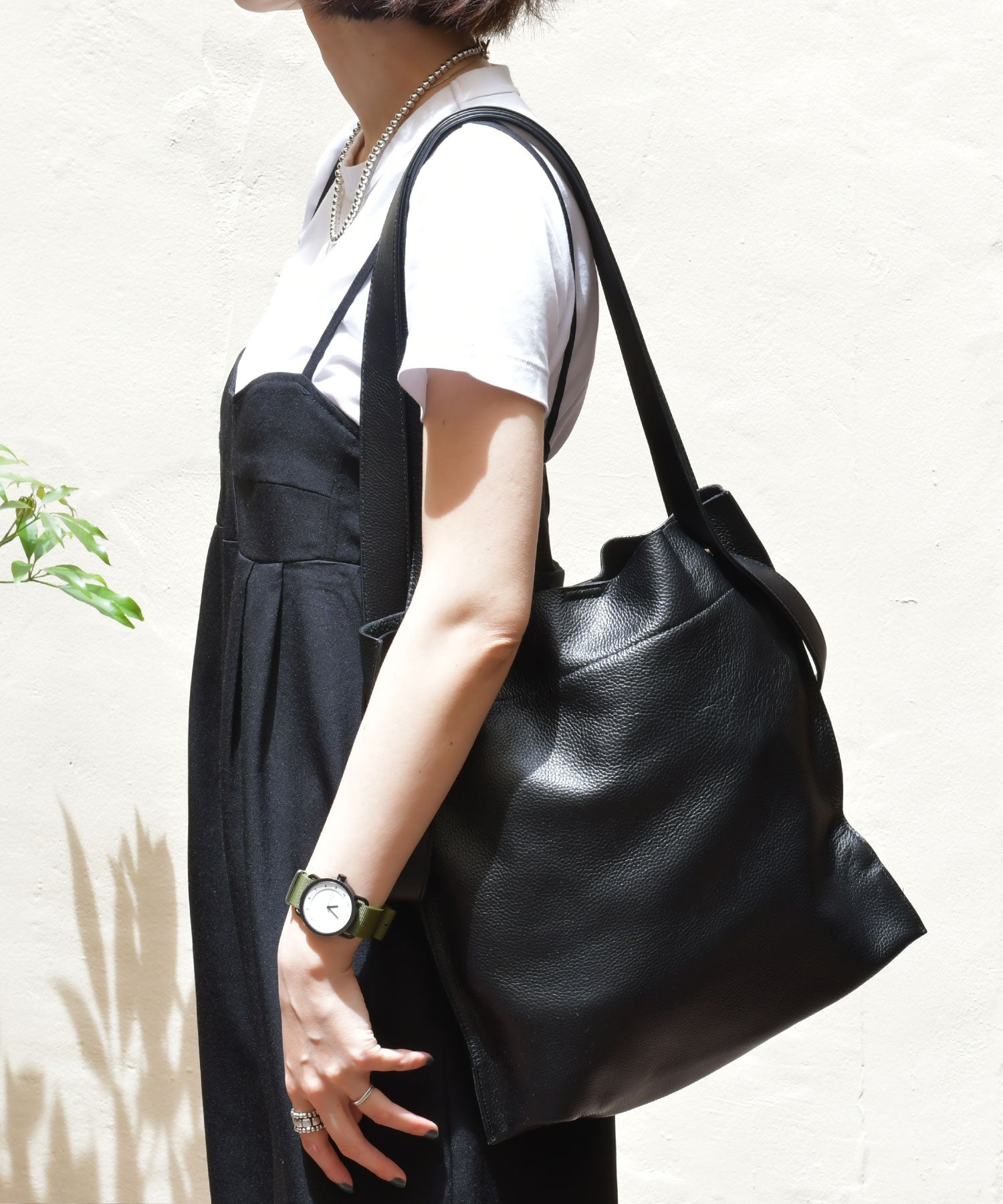 きめ細かなシボが入った、しっとりとした手触りの上質なレザーを使用。マチのない薄いシルエットは、くたっと体になじみ、ストレスなく持つことができます。
