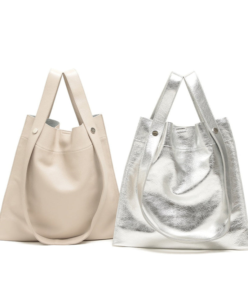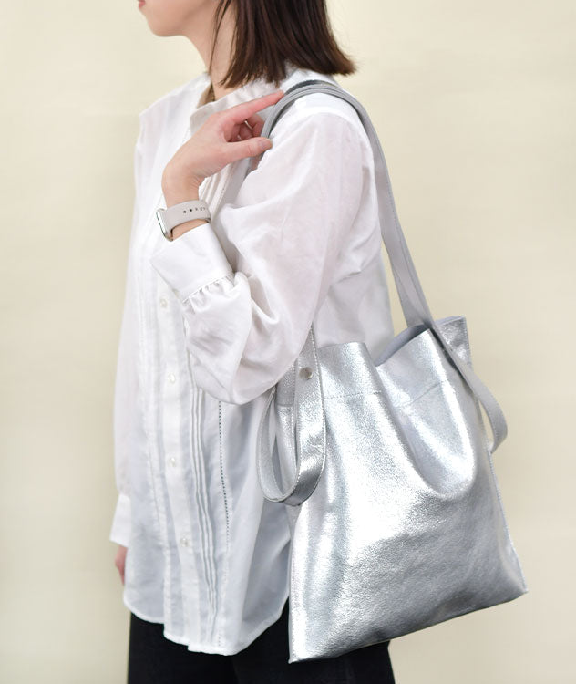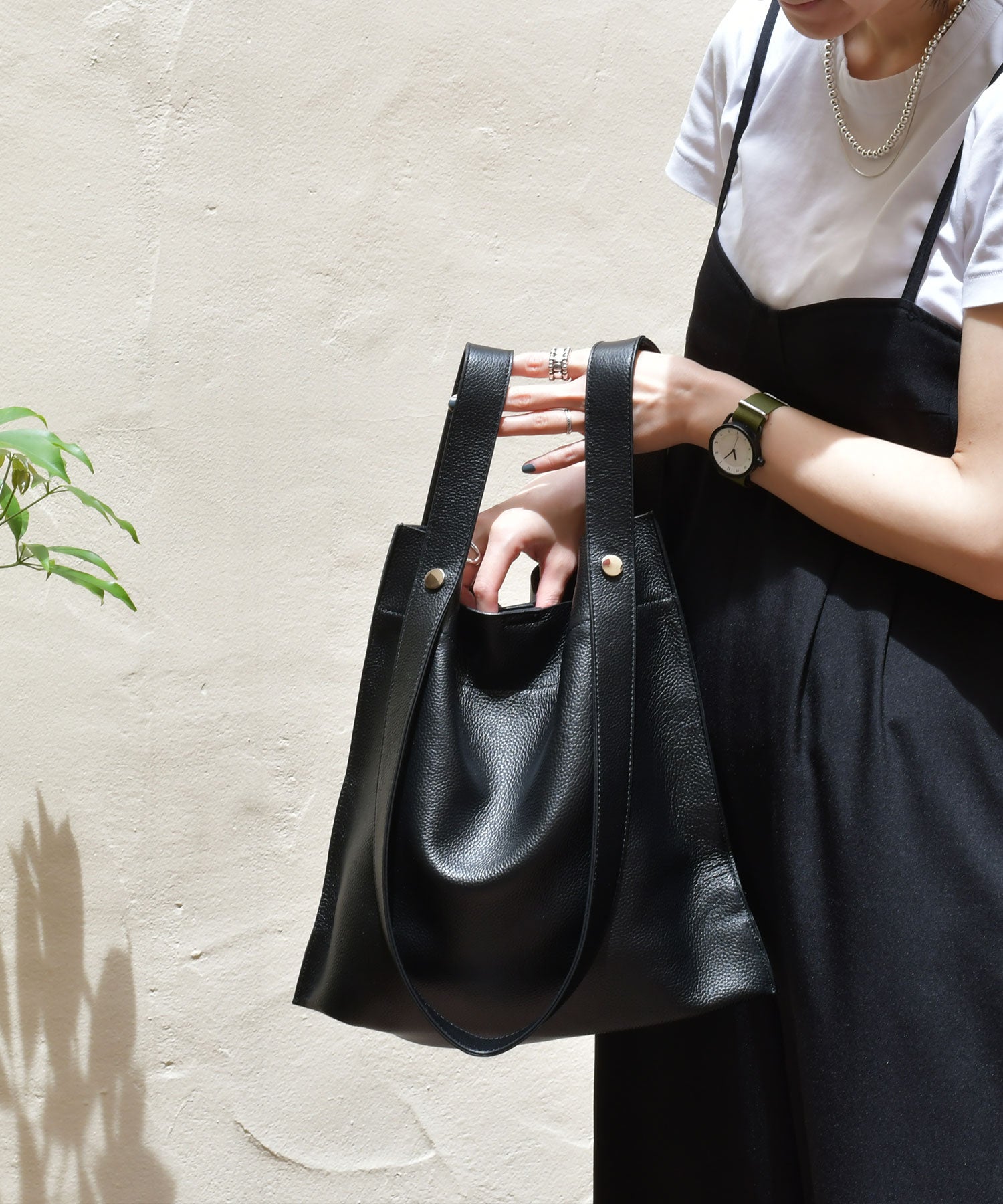 A4サイズがはいるたっぷり感です。ミニバッグとあわせて2個持ちスタイルにもおすすめ。