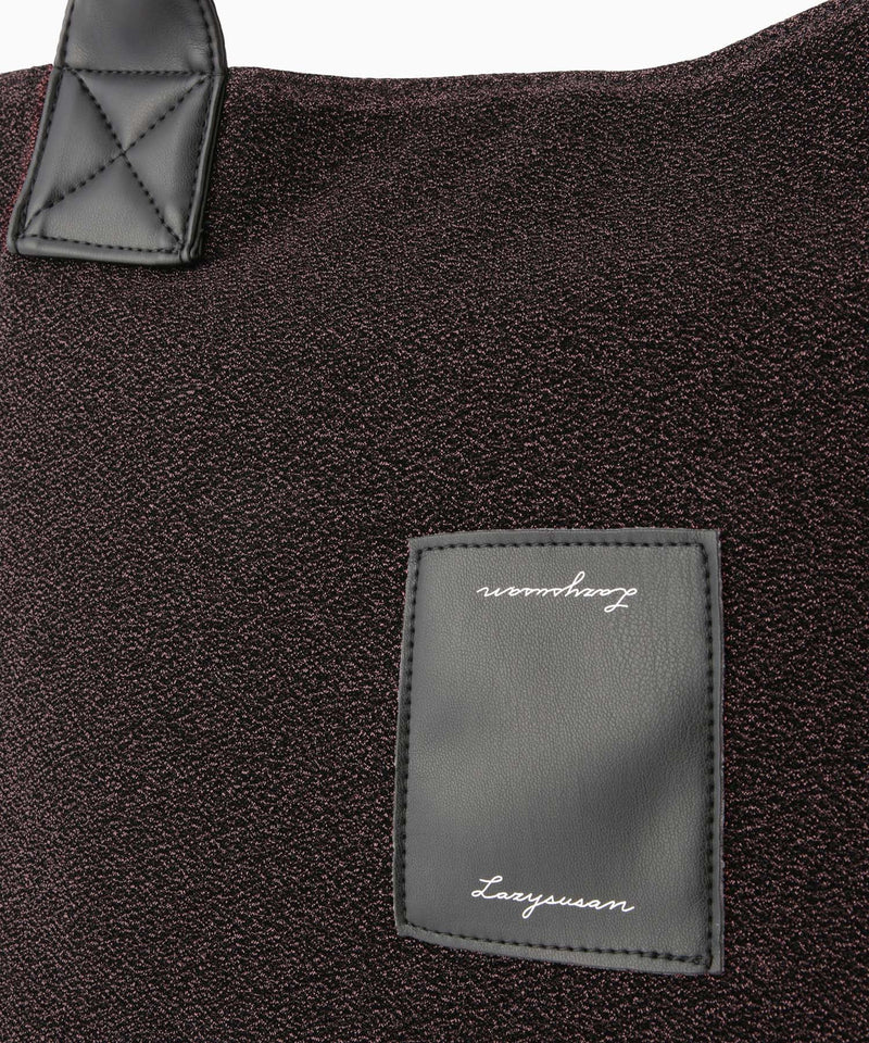 ラメがダンスしているかのような煌びやかな生地のバッグ。表側にはデザインロゴを入れて、ポイントにしました。 秋冬のお洋服がパッと華やかになるデザインですが、合皮は黒なので、どんな洋服にも合うかと思います。