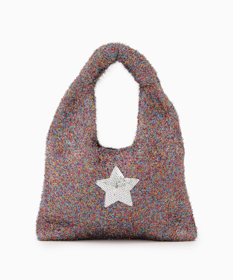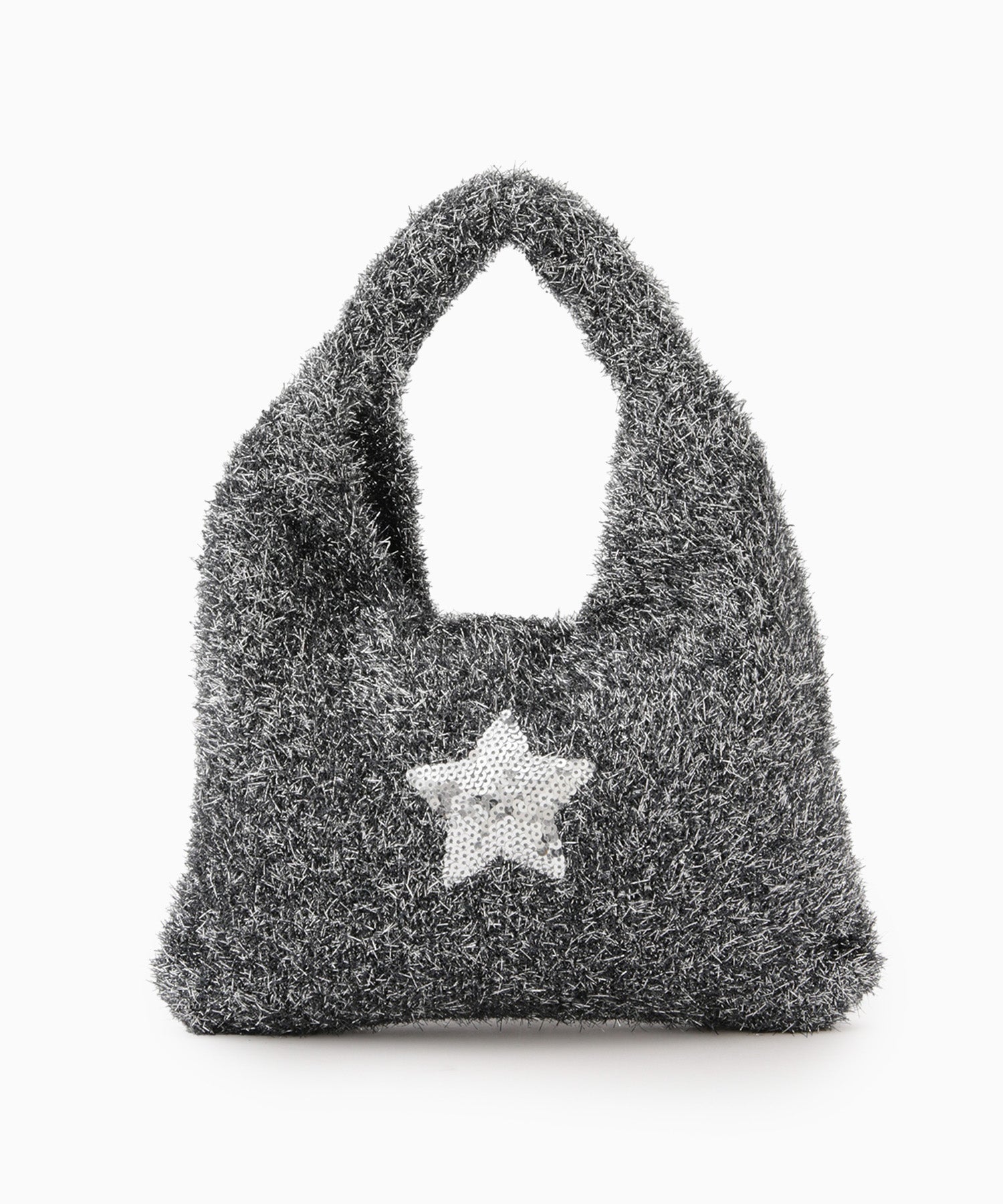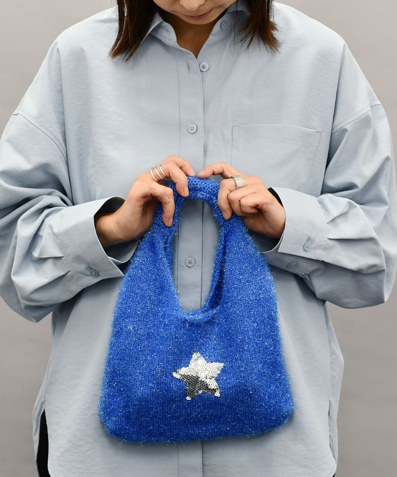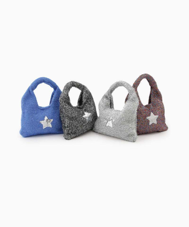柔らかなニット素材にラメ感がキュートなミニバッグ。星のまたたきをスパンコールで表現し、異なるふたつの煌めきが楽しめます。