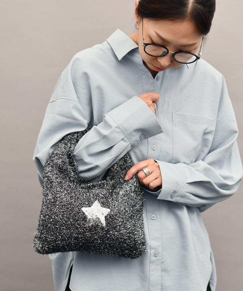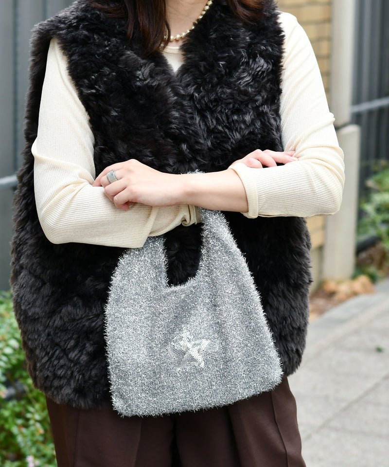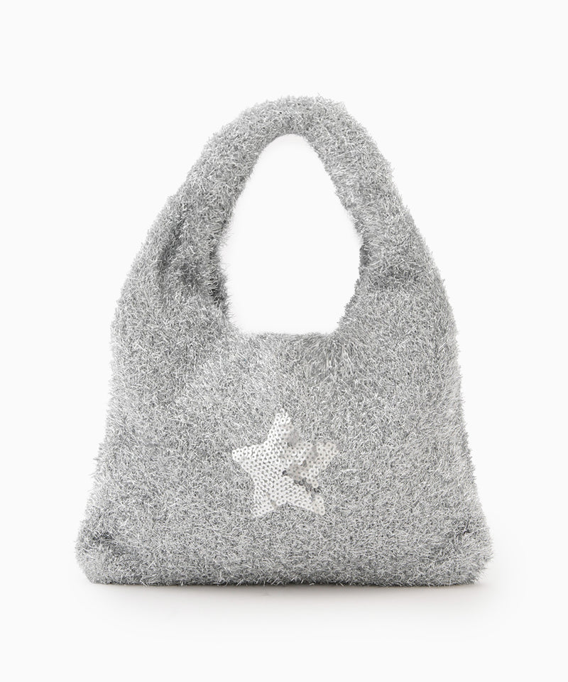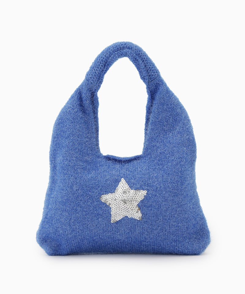 柔らかなニット素材にラメ感がキュートなミニバッグ。星のまたたきをスパンコールで表現し、異なるふたつの煌めきが楽しめます。