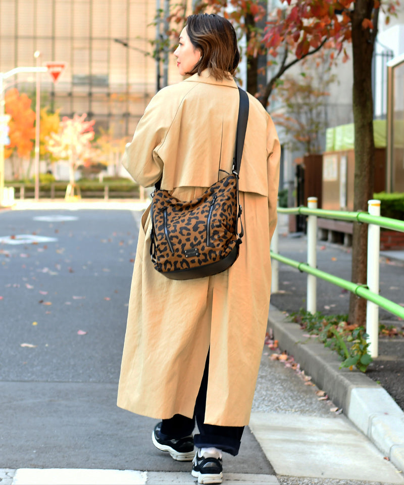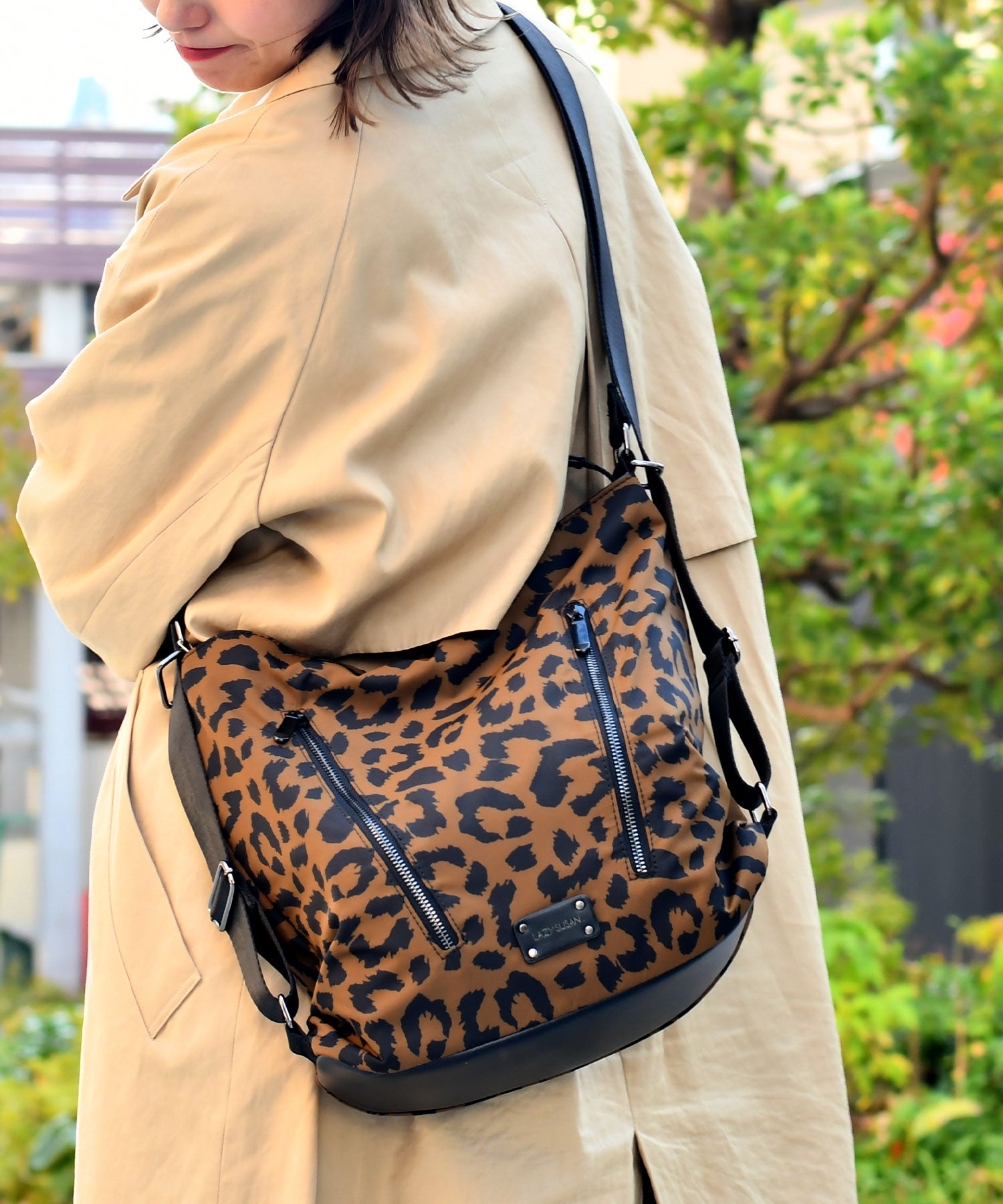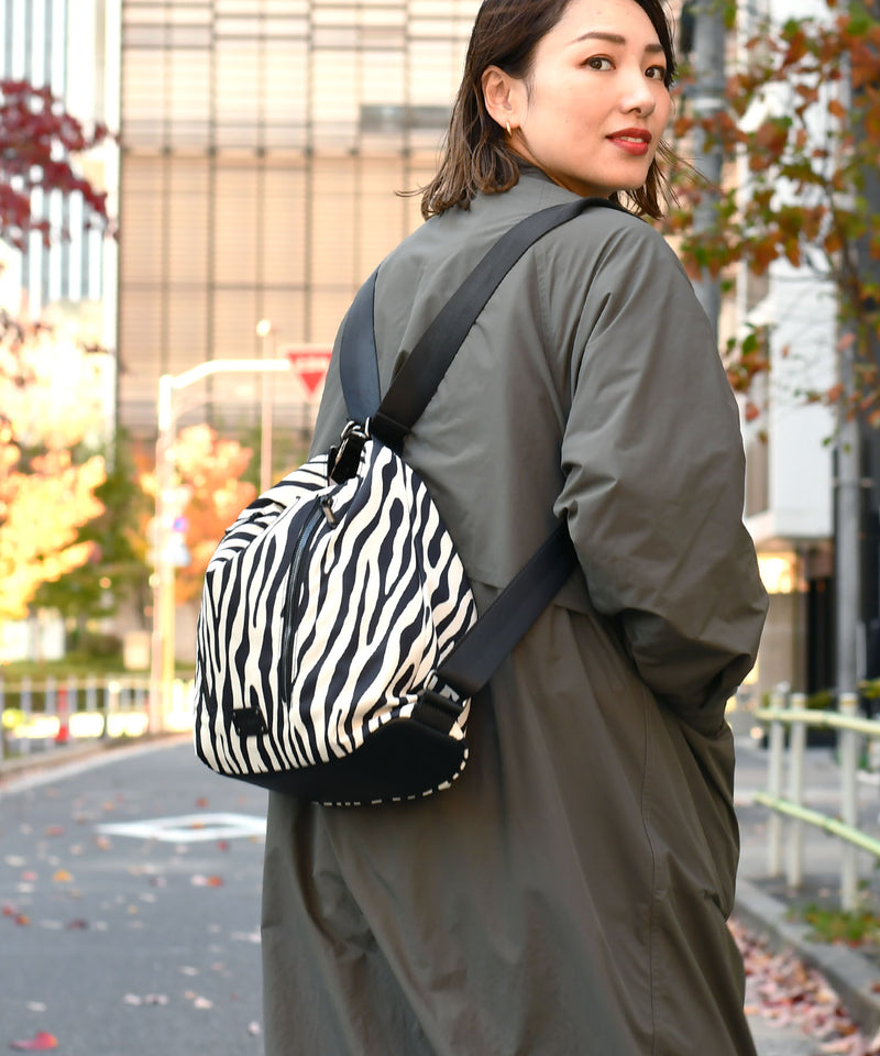 長めのショルダーで肩に掛けやすく、フィット感抜群のバッグ。肩掛け、斜め掛け、リュックの3WAYでお使いいただけます。