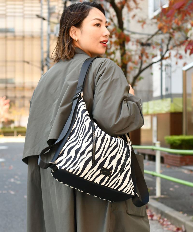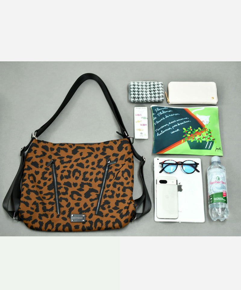 外側には前面2個、背面1個のファスナーポケットを配置。前面は斜めにすることで取り出しやすさとデザイン性を叶えます。バッグを開けなくても小物を仕分けしながら取り出せる機能性もポイントです。