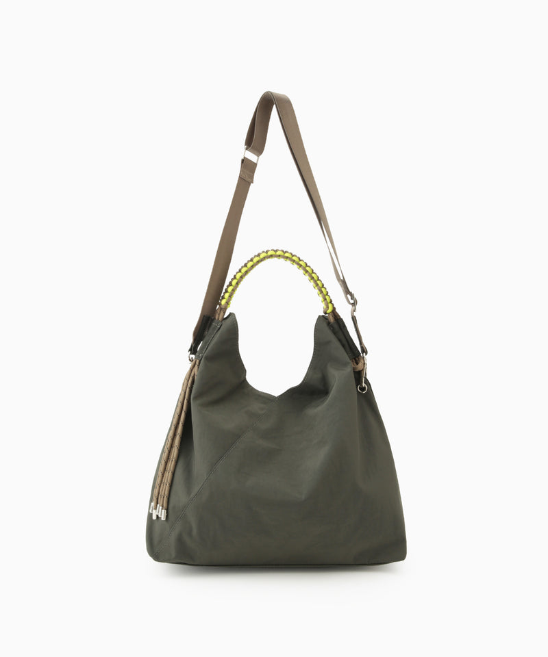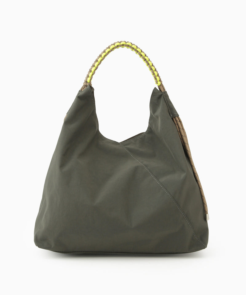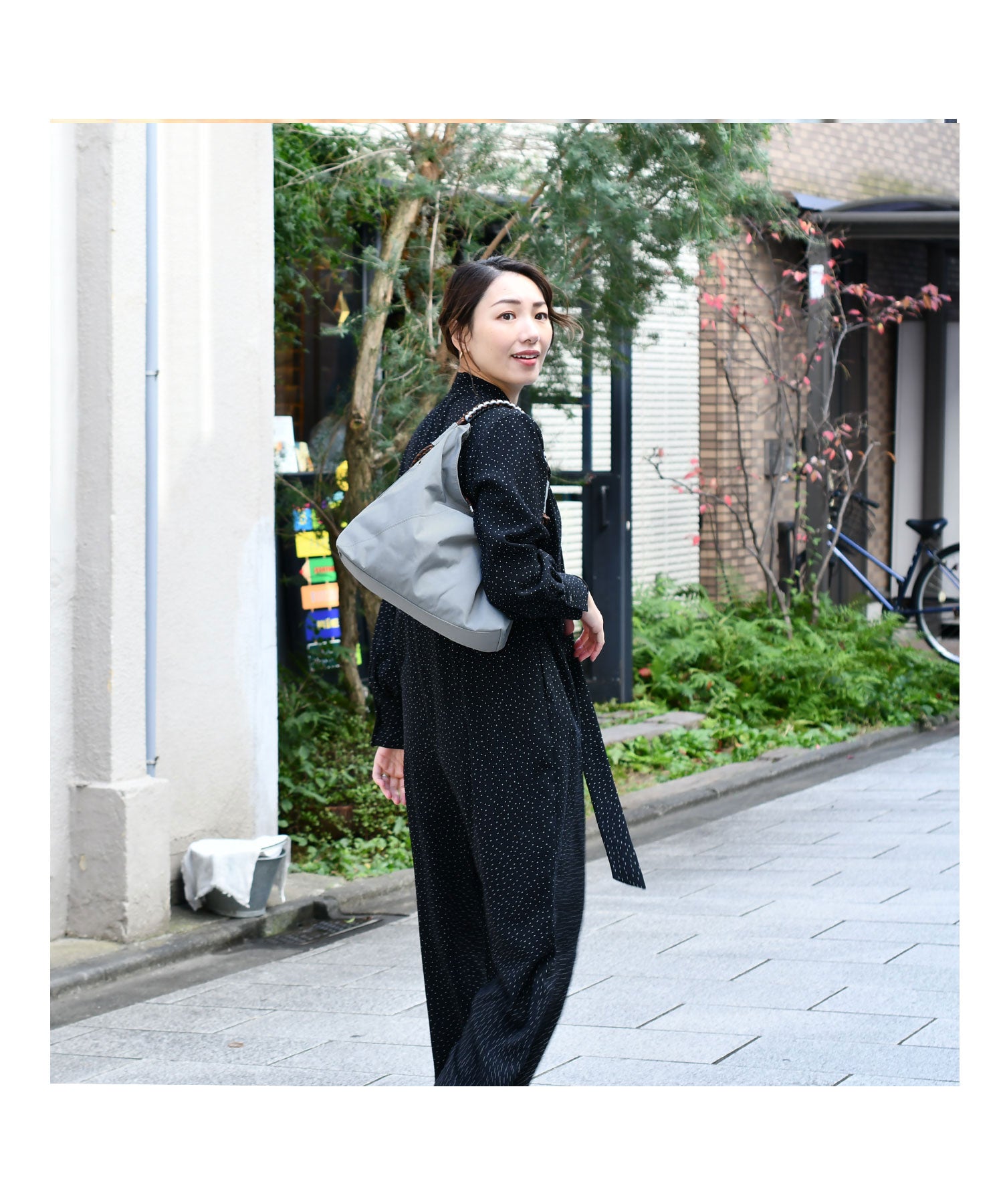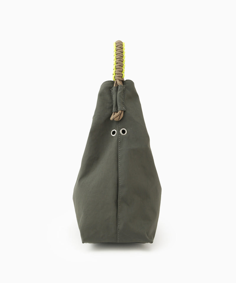 ベーシックなカラーがいつものコーデになじみつつ、カラフルなコードハンドルがアクセントに。しっかりとしたナイロン素材で、雨の日もさっと拭いて気兼ねなく使えるのが嬉しい。(非防水)