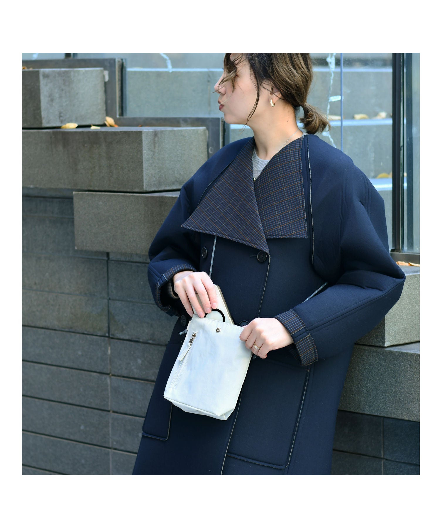 スナップボタンでさっと出し入れ。ファスナーポケットにはリップやハンドクリームを。お散歩や近所のお買物ならこれひとつで身軽にお出かけができます。