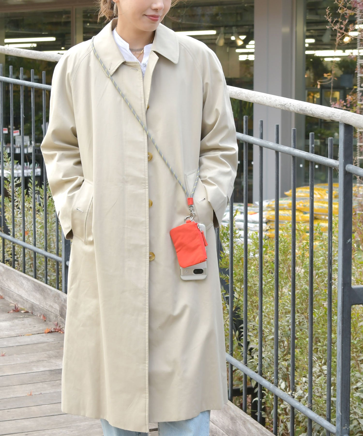 バッグと一緒に持てるミニポーチ&ストラップホルダーもついてくる!スマートフォンとコイン、ICカード、リップがひとつになって快適なお出かけが叶います。