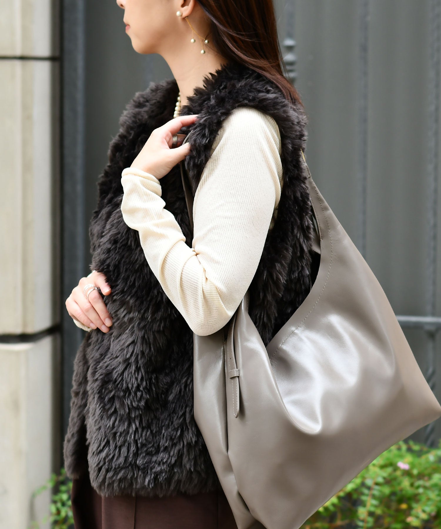 カジュアルにも上品にも着回しができるのは、上質な素材ならでは。さらに、ベストならファーバッグや小物をあわせてもボリュームが出すぎず、季節感のあるおしゃれが楽しめます。