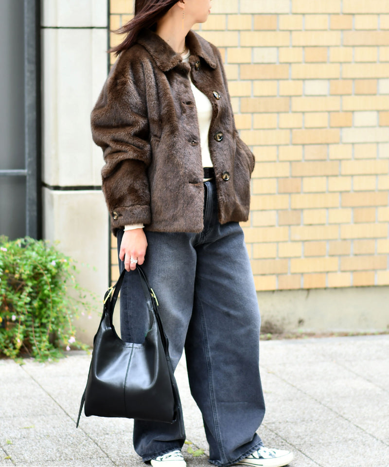やわらかく艶やかなファーが、まるでミンクかのように、ラグジュアリーな雰囲気で羽織れるジャケット。袖口のボタンでラインを可愛く演出し、こなれオーラを放つ大人の冬スタイルが完成。今年の気分にぴったりな、フェミニン×カジュアルがお楽しみいただけます。
